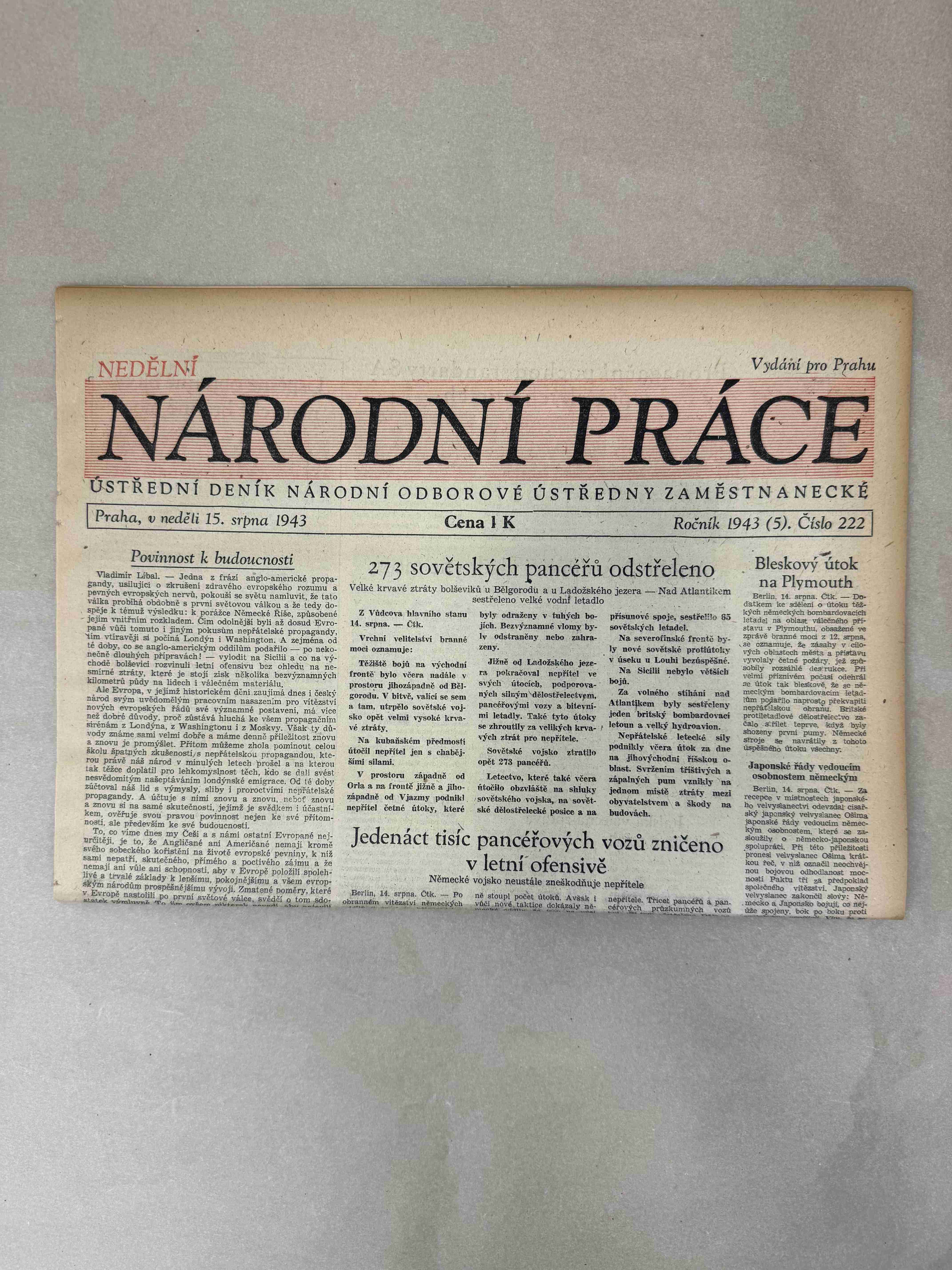 Nabízené noviny jsou určeny výhradně ke sběratelským účelům a neslouží k propagaci jakéhokoliv hnutí směřujícího k potlačení práv a svobod člověka (nacistického, komunistického apod.). Prodávající se distancuje od výše uvedených hnutí a jejich myšlenek.