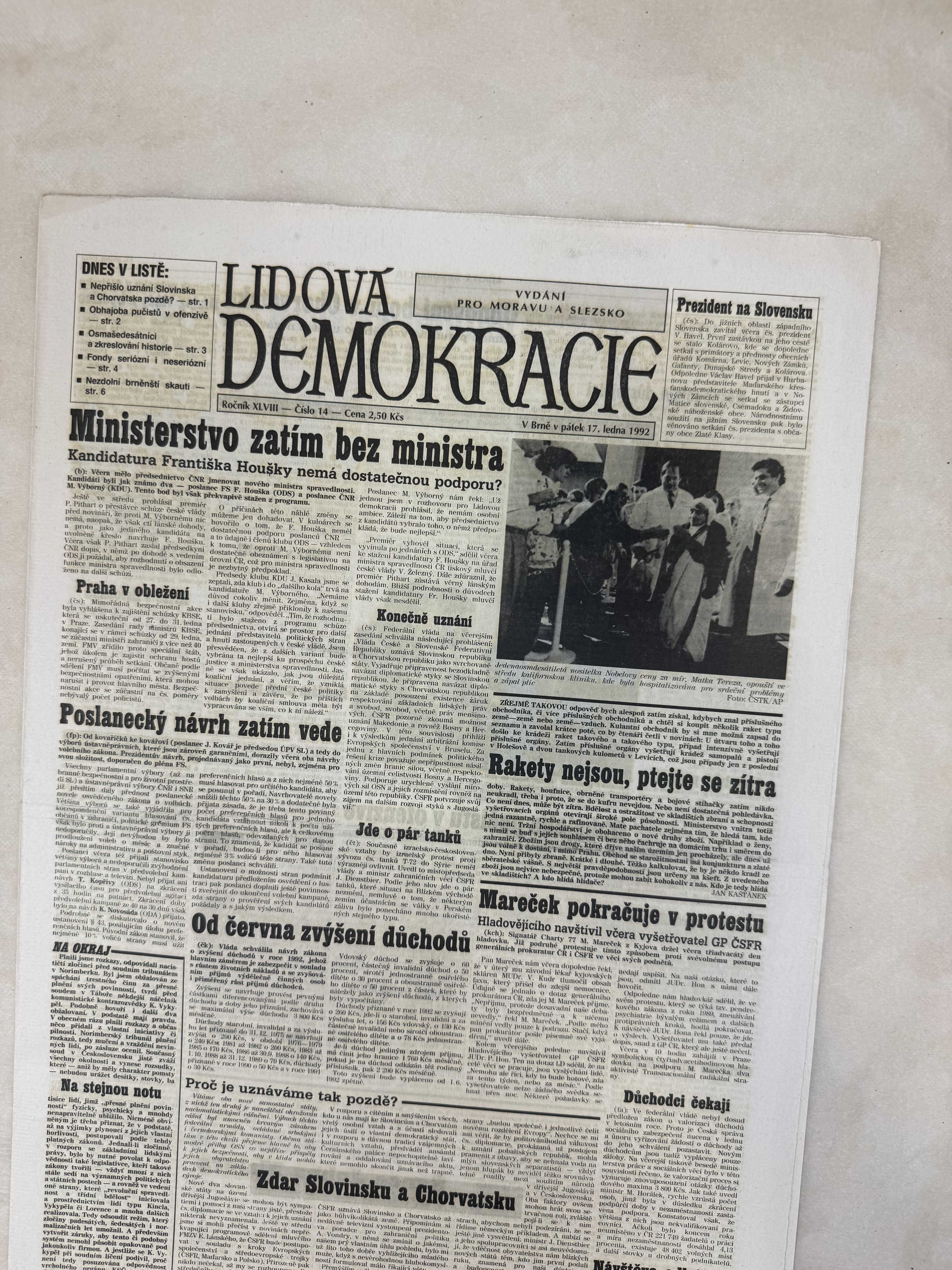 Lidová demokracie 17.1.1992