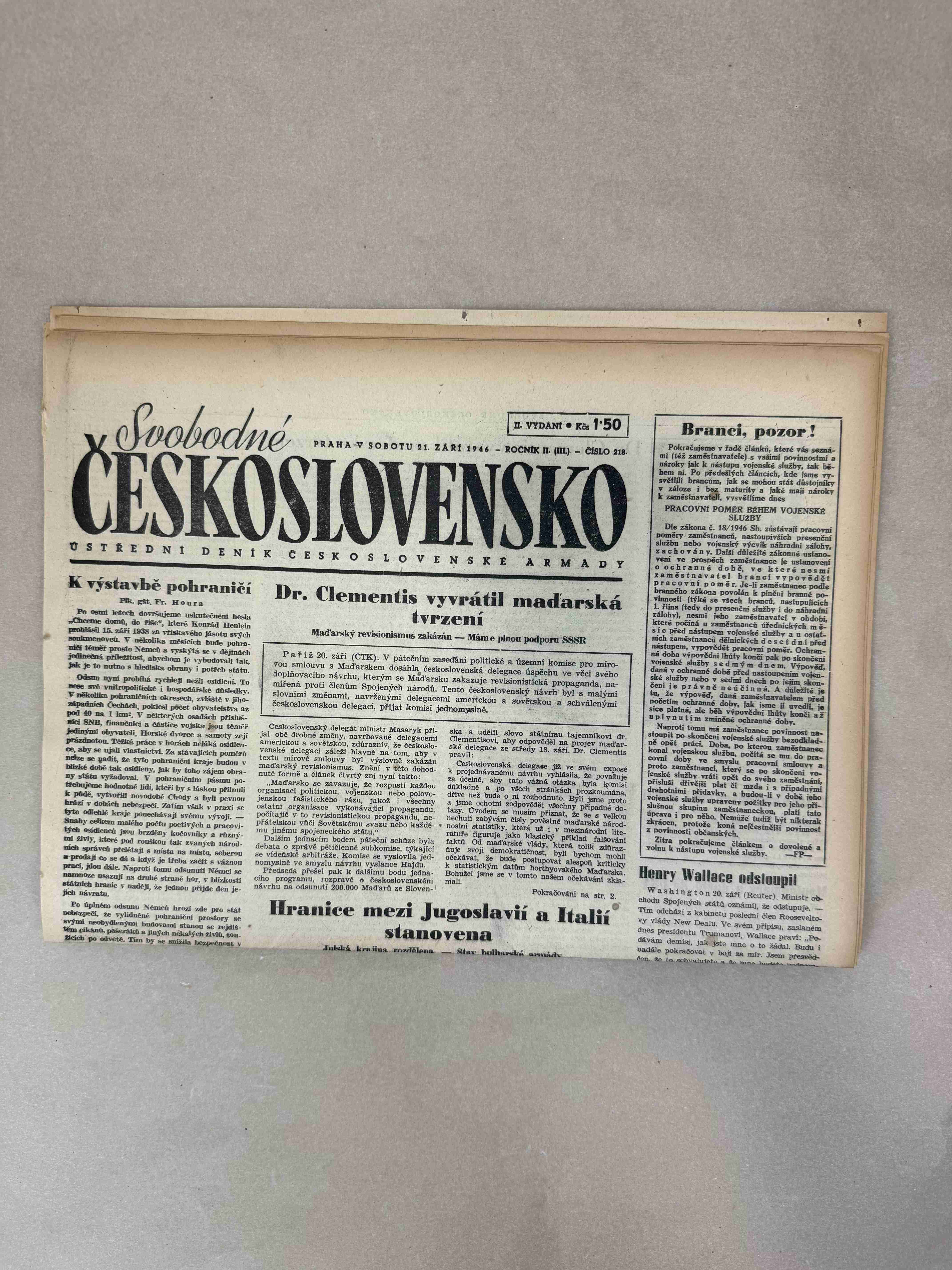 Nabízené noviny jsou určeny výhradně ke sběratelským účelům a neslouží k propagaci jakéhokoliv hnutí směřujícího k potlačení práv a svobod člověka (nacistického, komunistického apod.). Prodávající se distancuje od výše uvedených hnutí a jejich myšlenek.