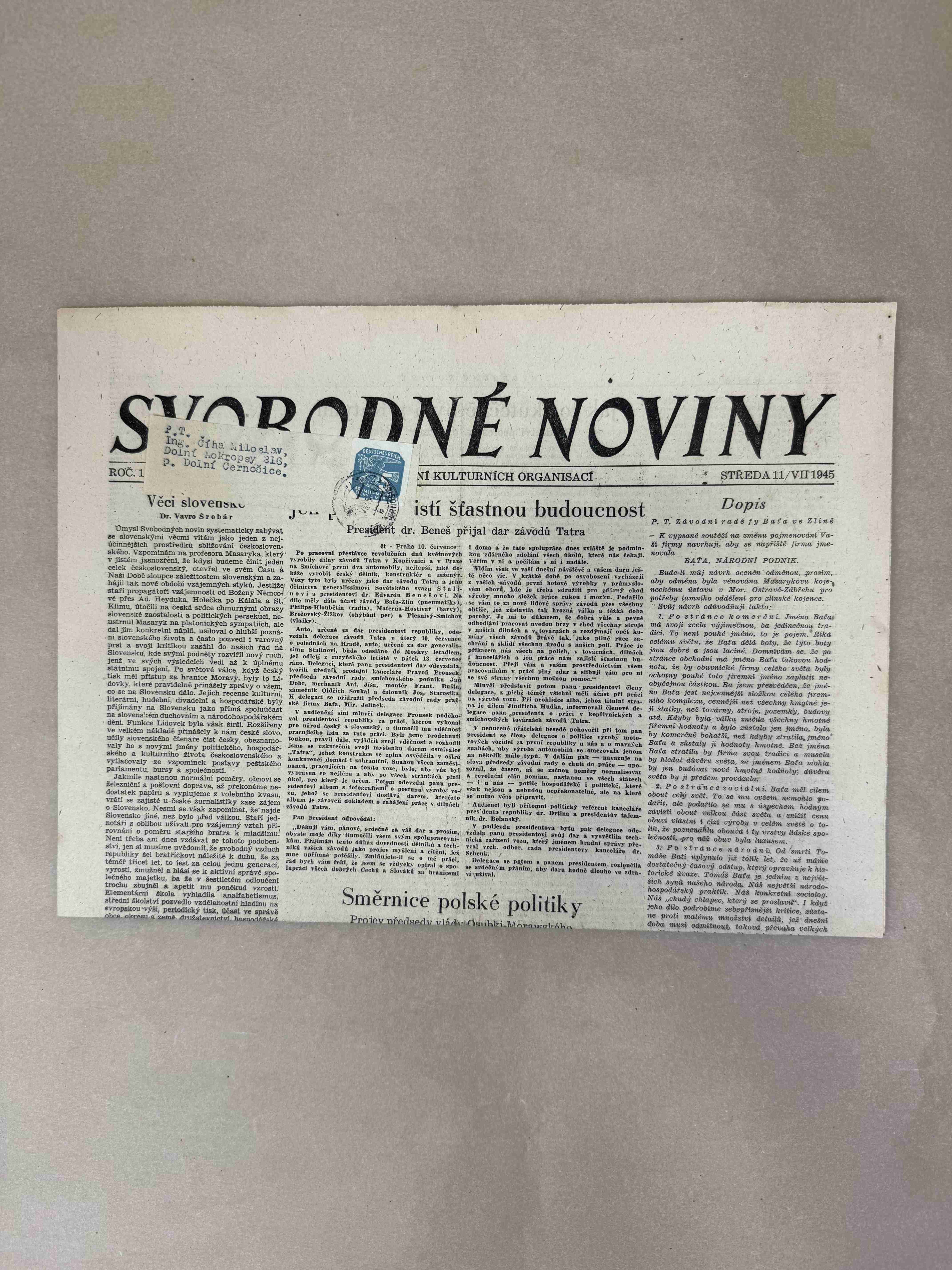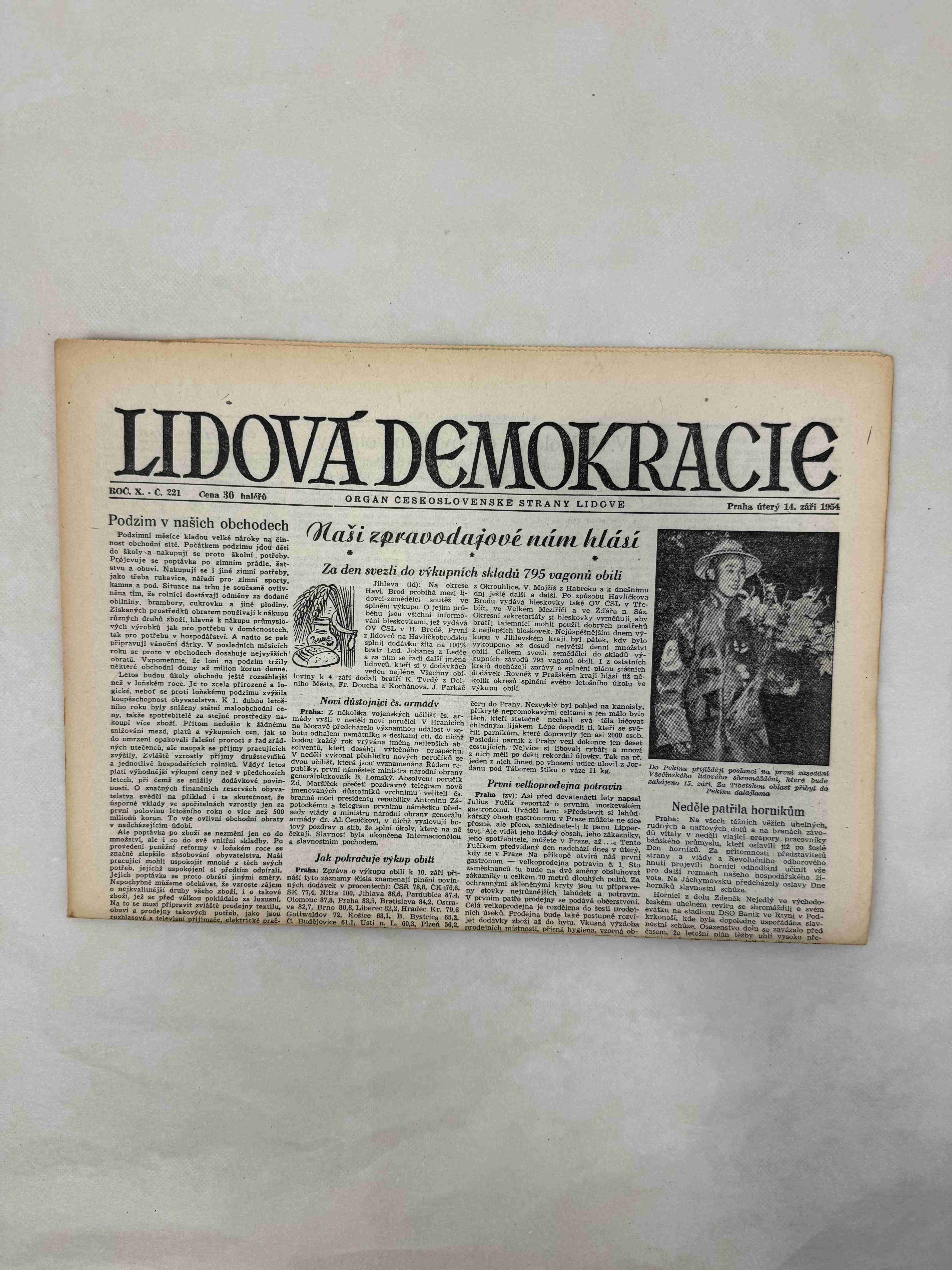 Originální dobový výtisk novin, nejedná se o reprodukci!
