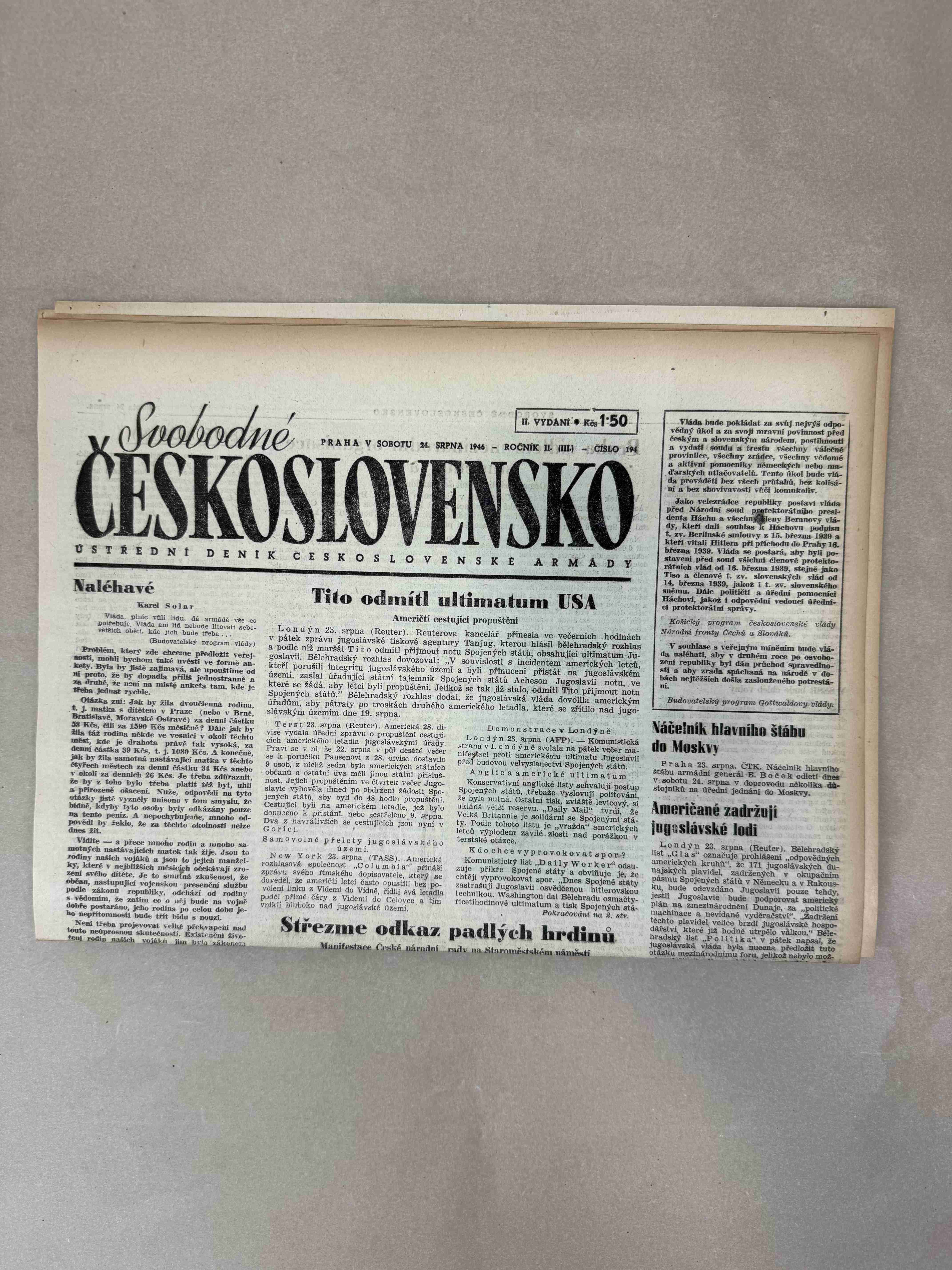 Nabízené noviny jsou určeny výhradně ke sběratelským účelům a neslouží k propagaci jakéhokoliv hnutí směřujícího k potlačení práv a svobod člověka (nacistického, komunistického apod.). Prodávající se distancuje od výše uvedených hnutí a jejich myšlenek.