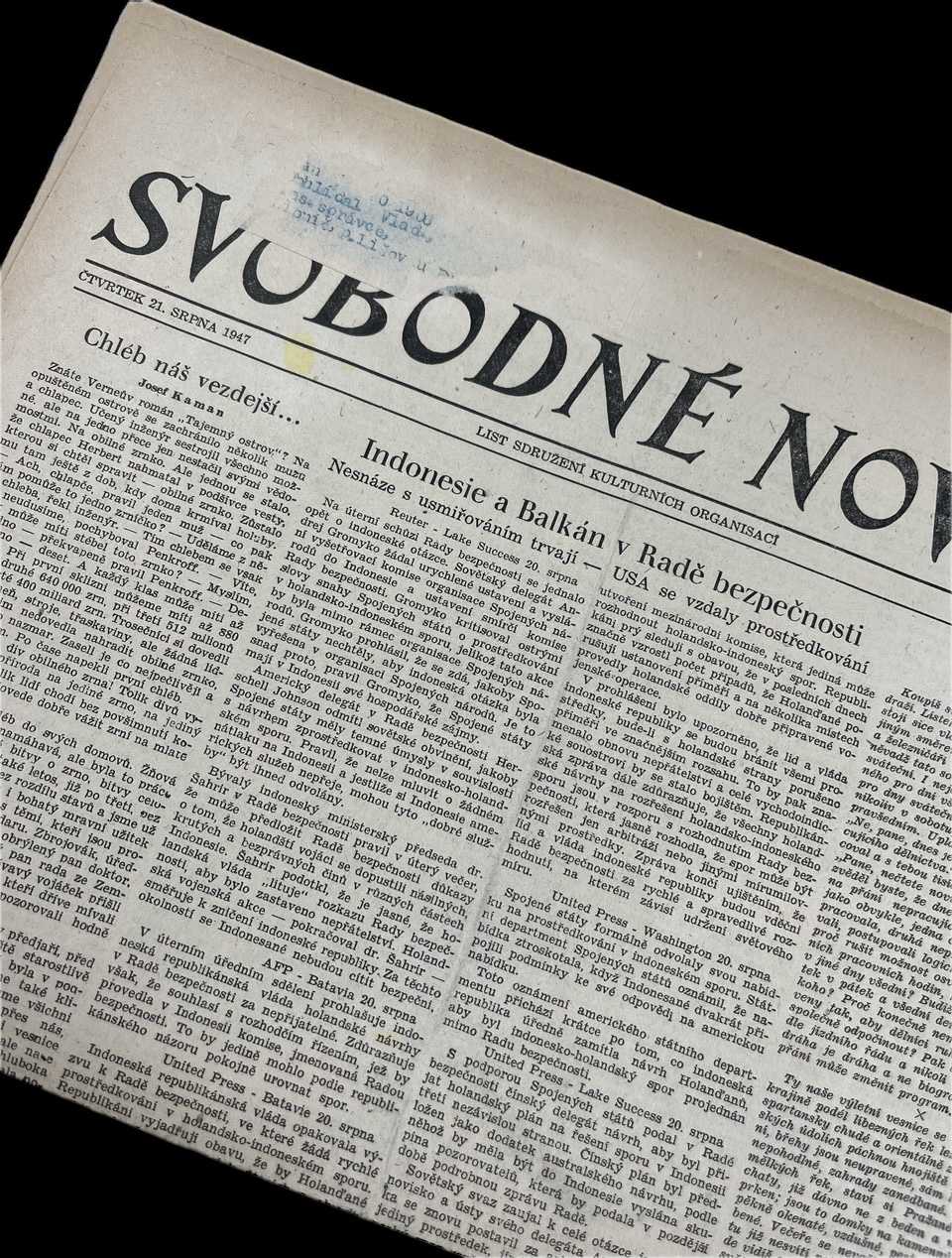 Noviny Svobodné slovo 21. 8. 1947