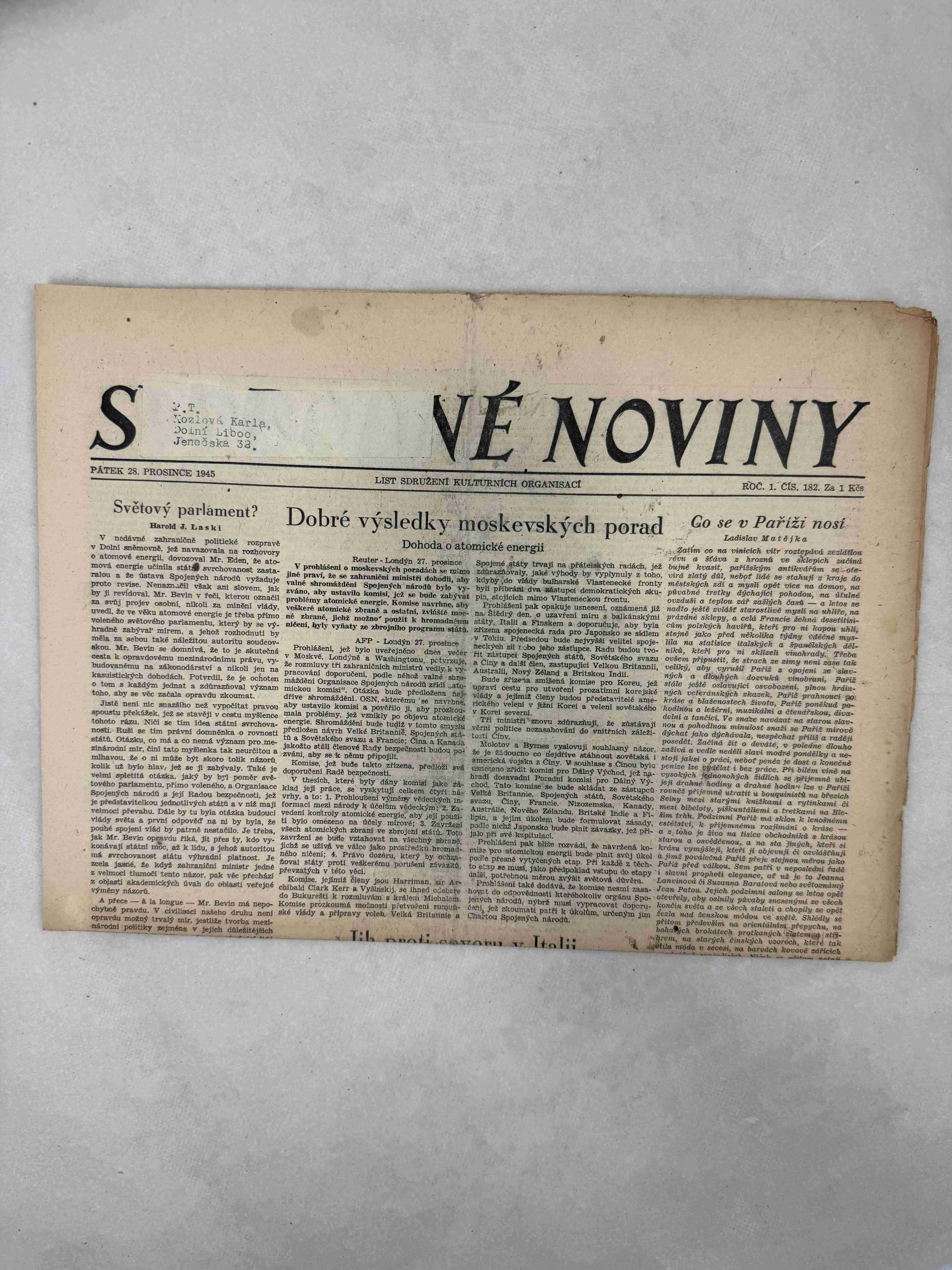 Originální dobový výtisk novin, nejedná se o reprodukci!