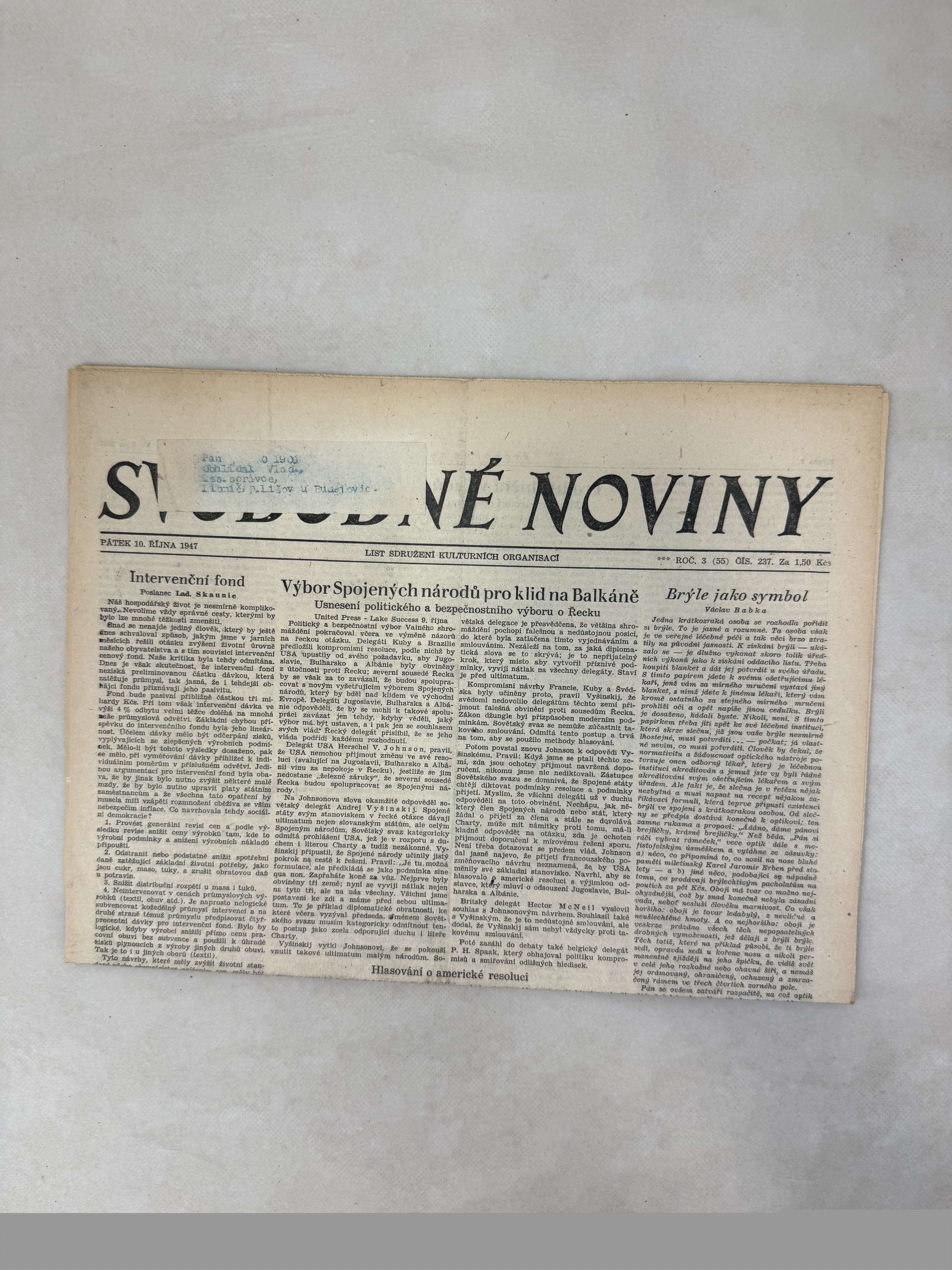 Svobodné noviny 10.10.1947