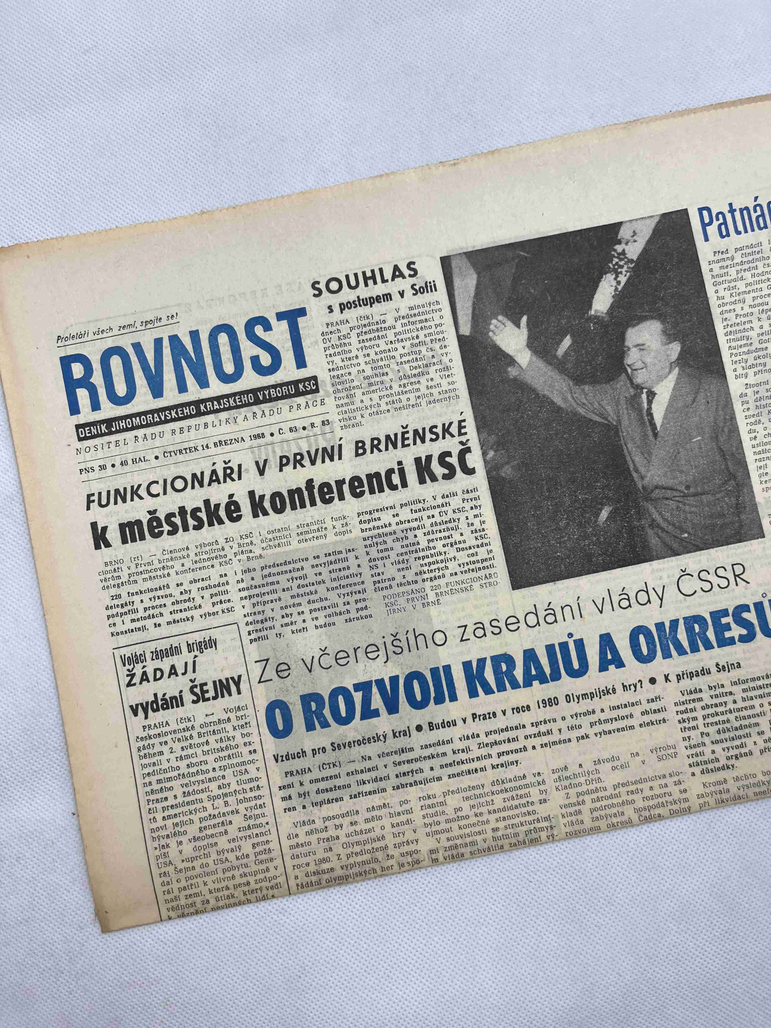 Originální dobový výtisk novin, nejedná se o reprodukci!