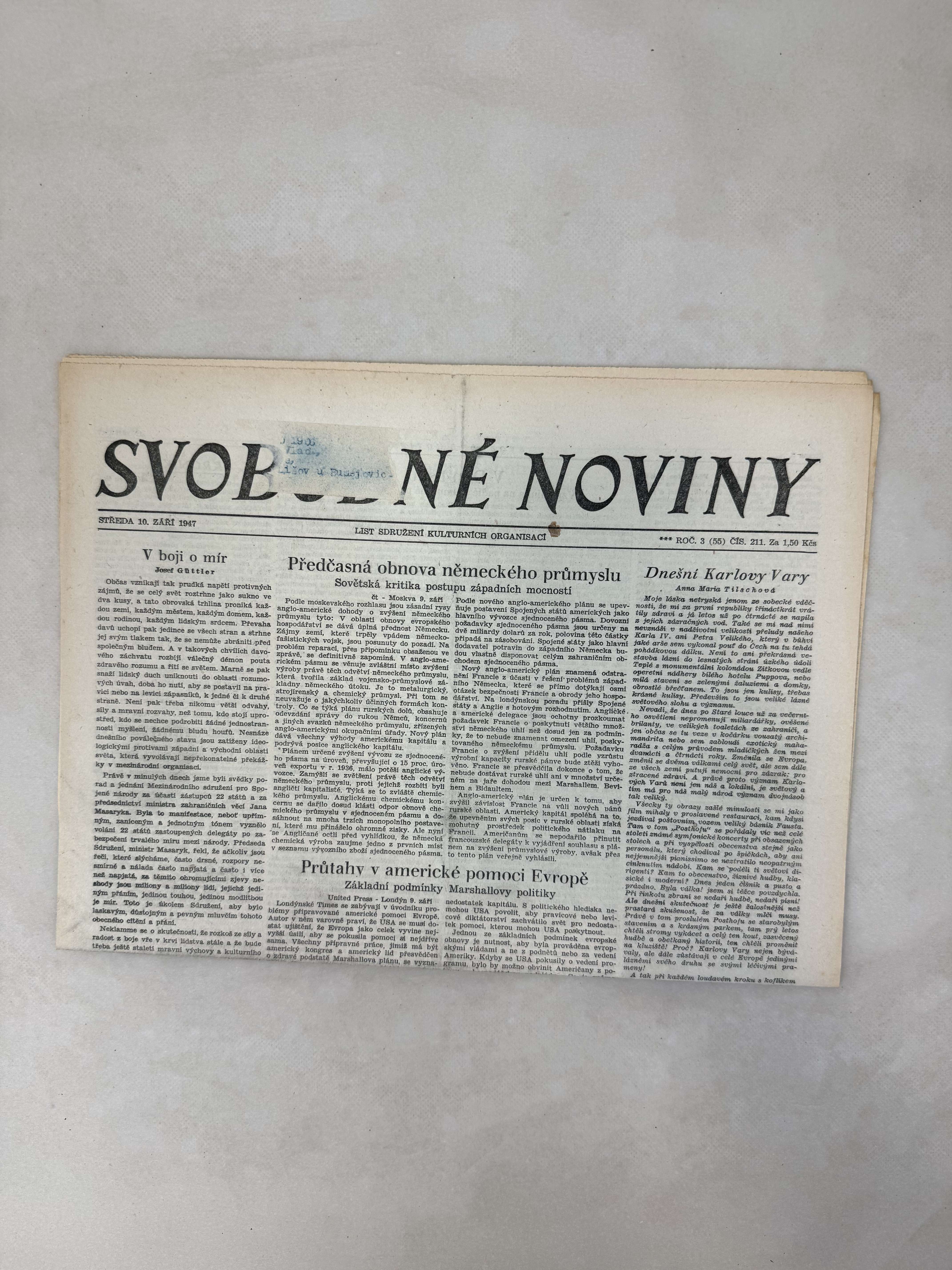 Svobodné noviny 10.9.1947