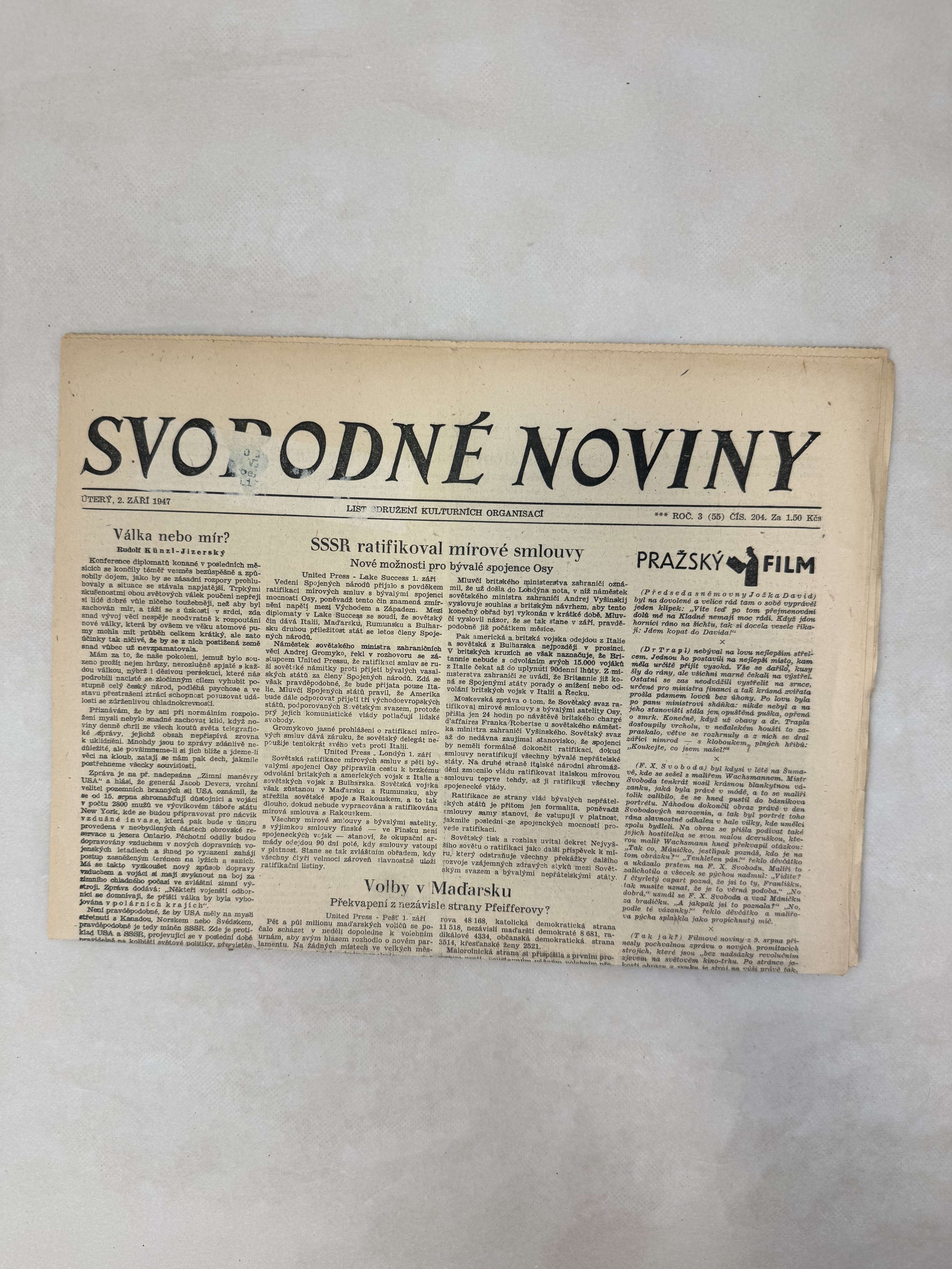 Svobodné noviny 2.9.1947