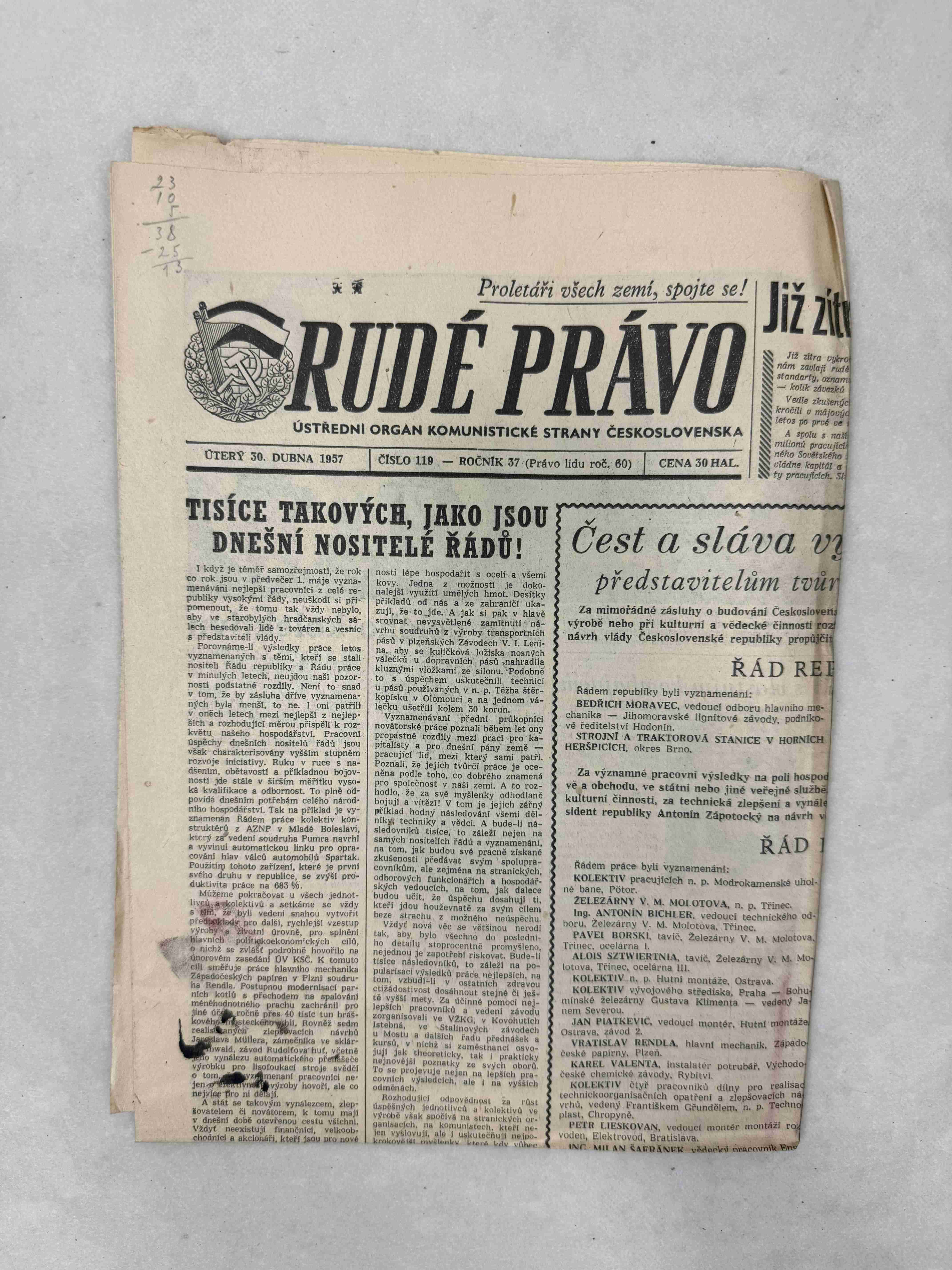 Originální dobový výtisk novin, nejedná se o reprodukci!
