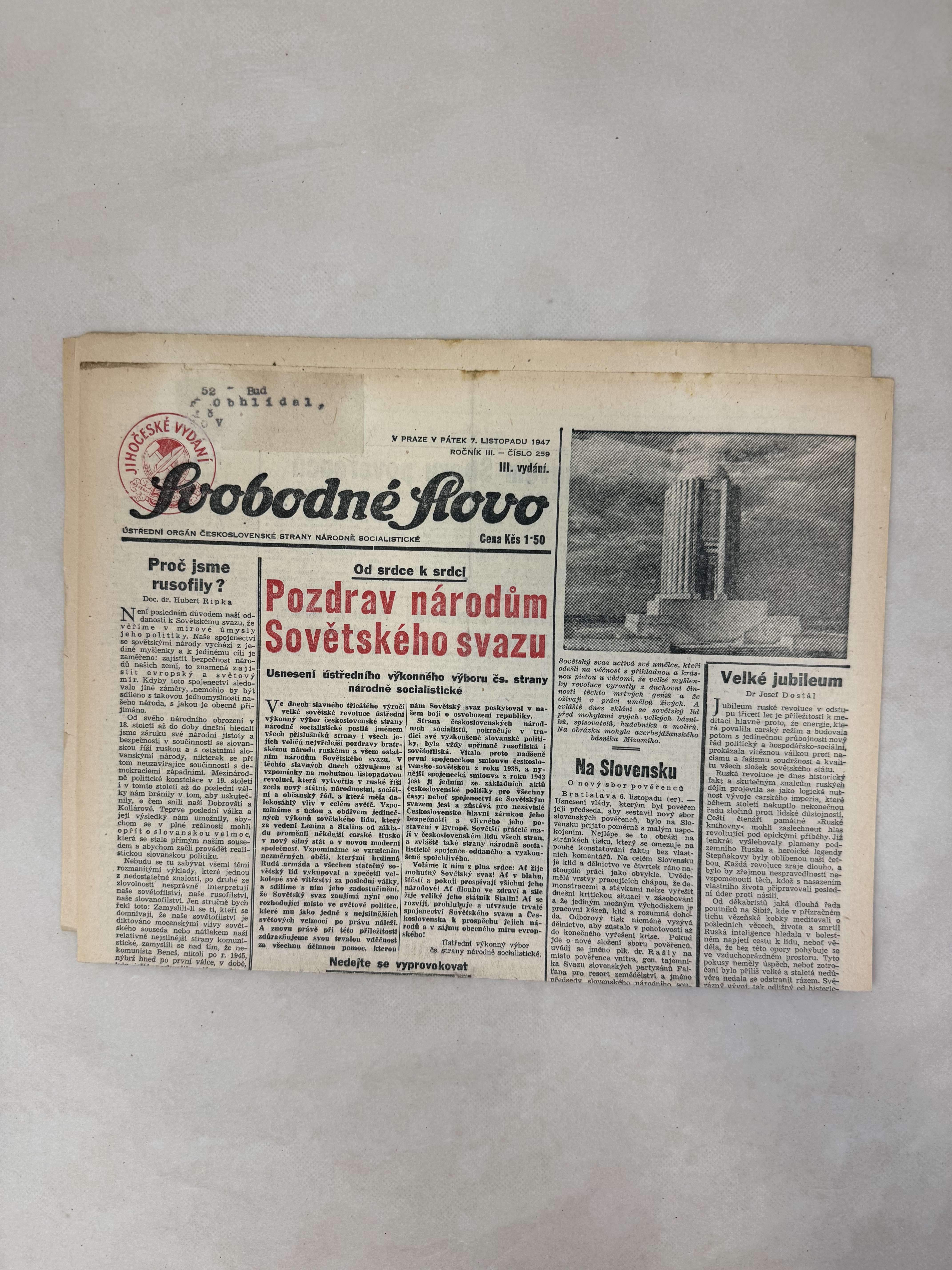 Svobodné slovo 7.11.1947