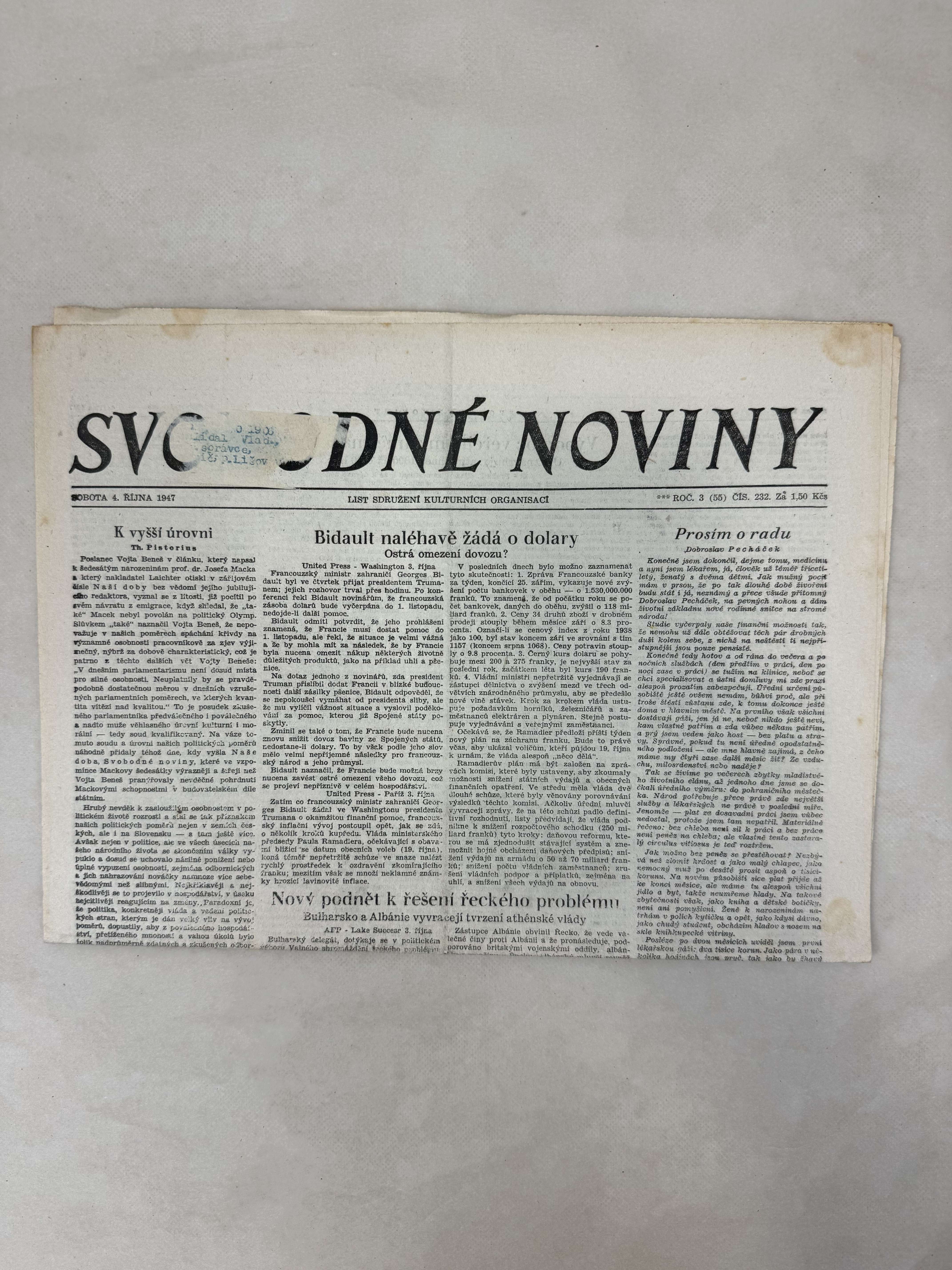 Svobodné noviny 4.10.1947