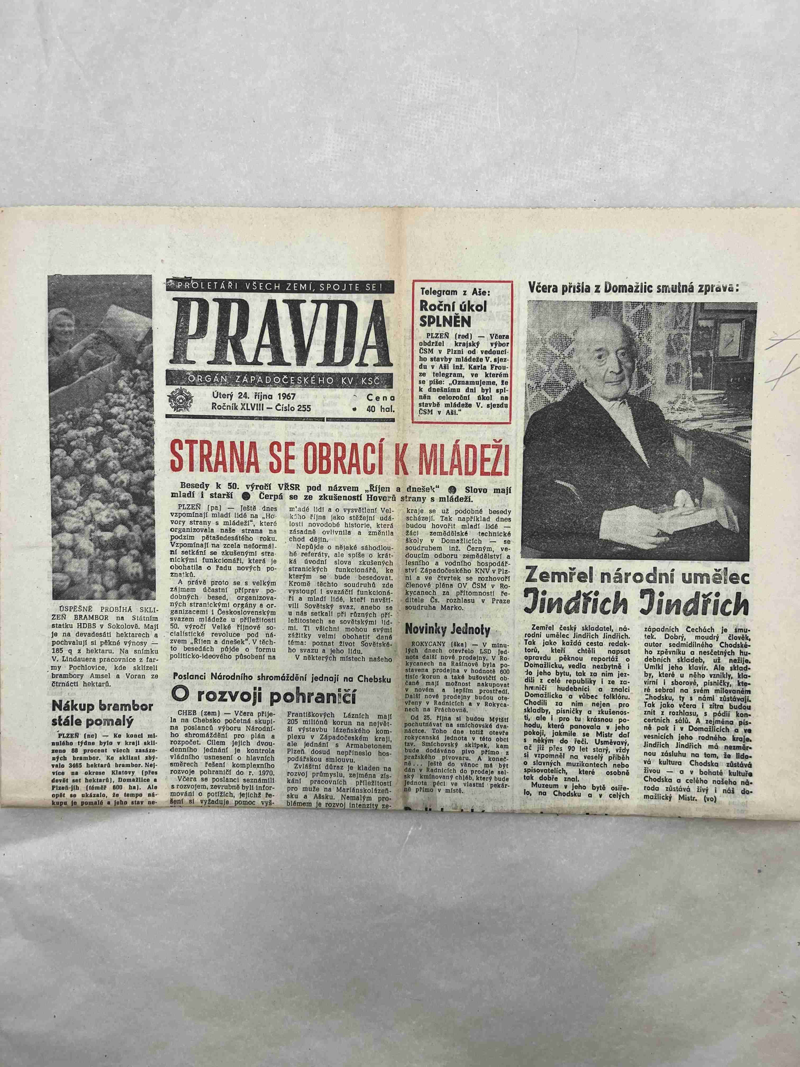 Originální dobový výtisk novin, nejedná se o reprodukci!