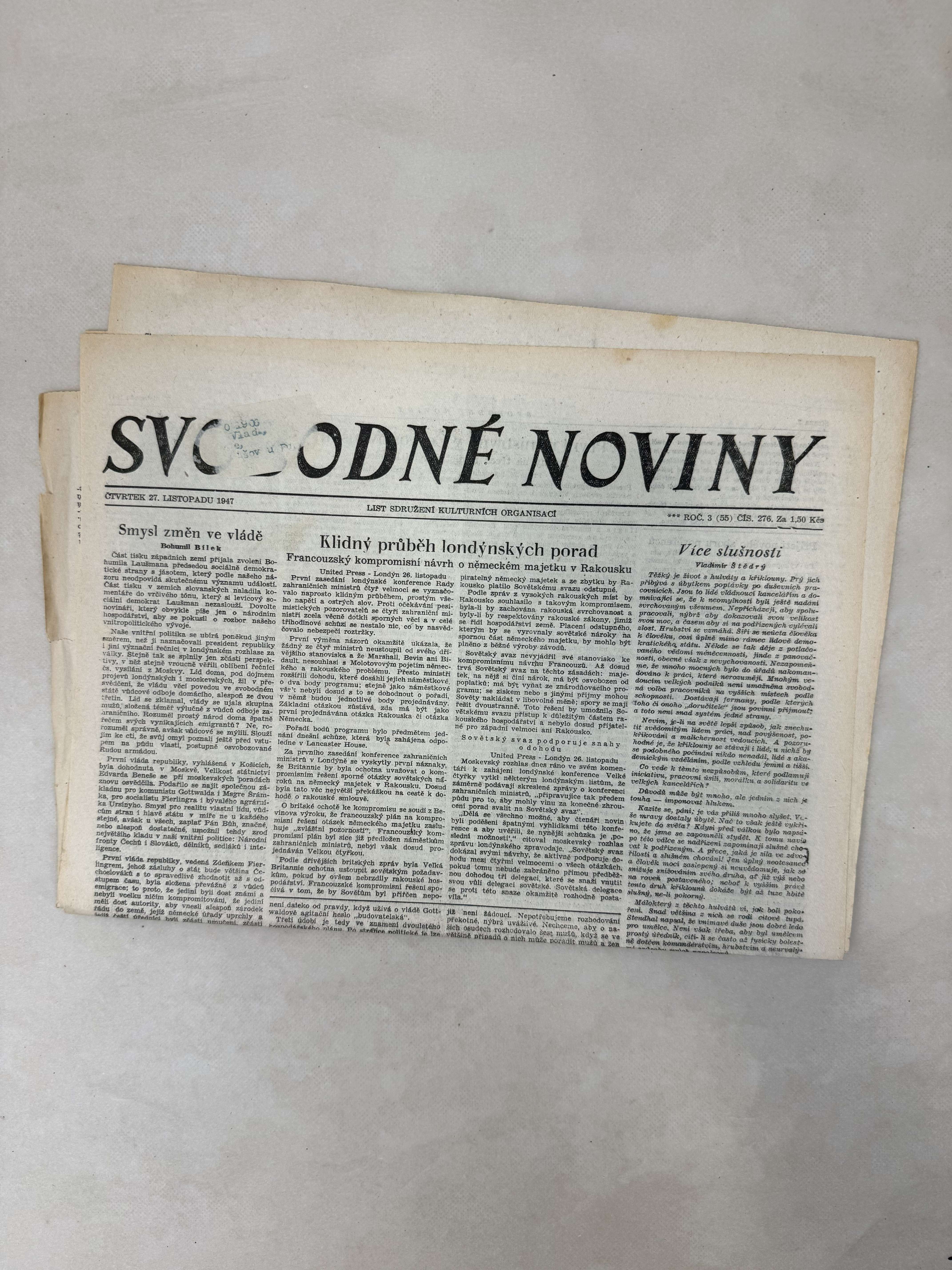 Svobodné noviny 27.11.1947