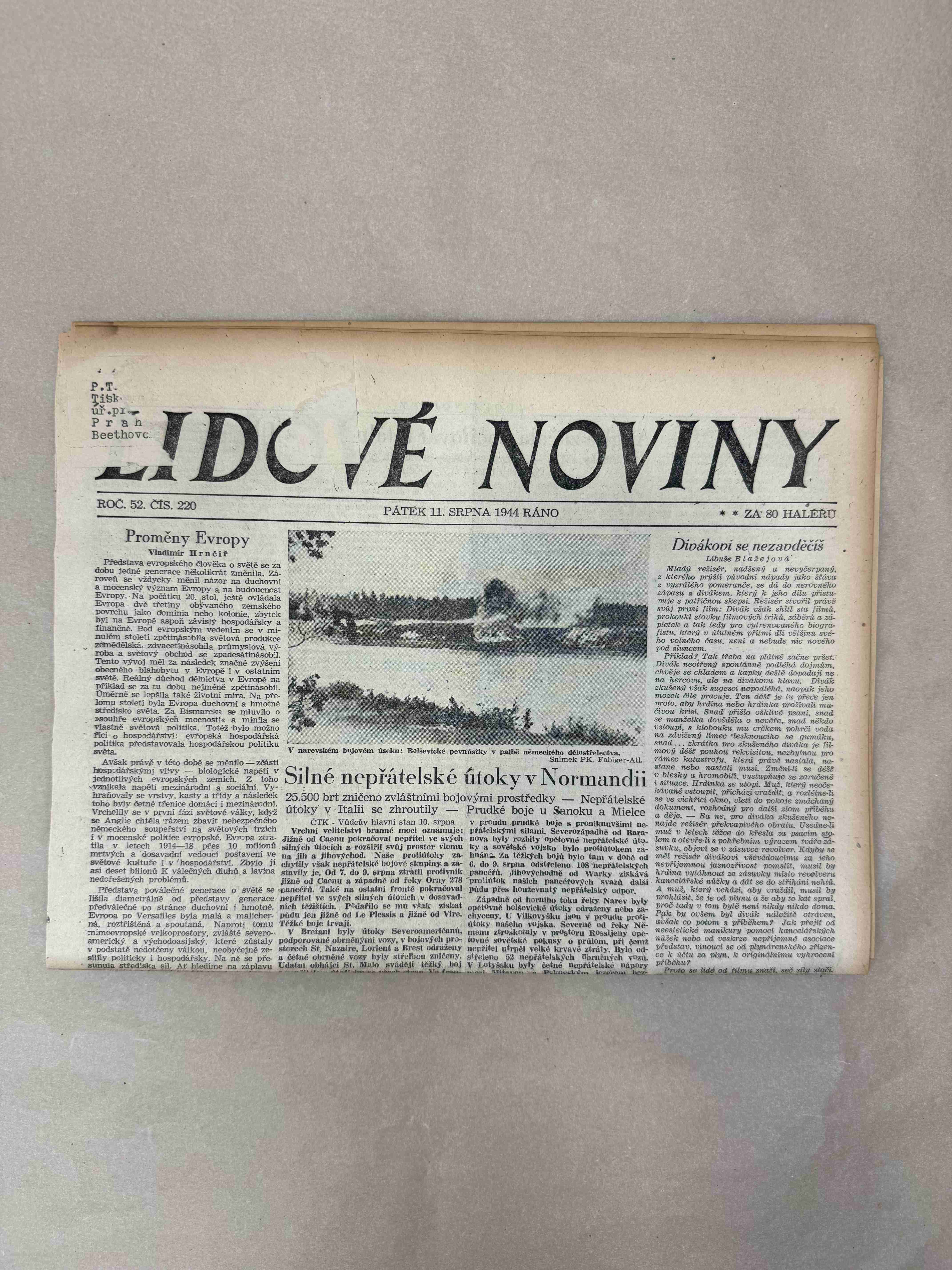 Originální dobový výtisk novin, nejedná se o reprodukci!