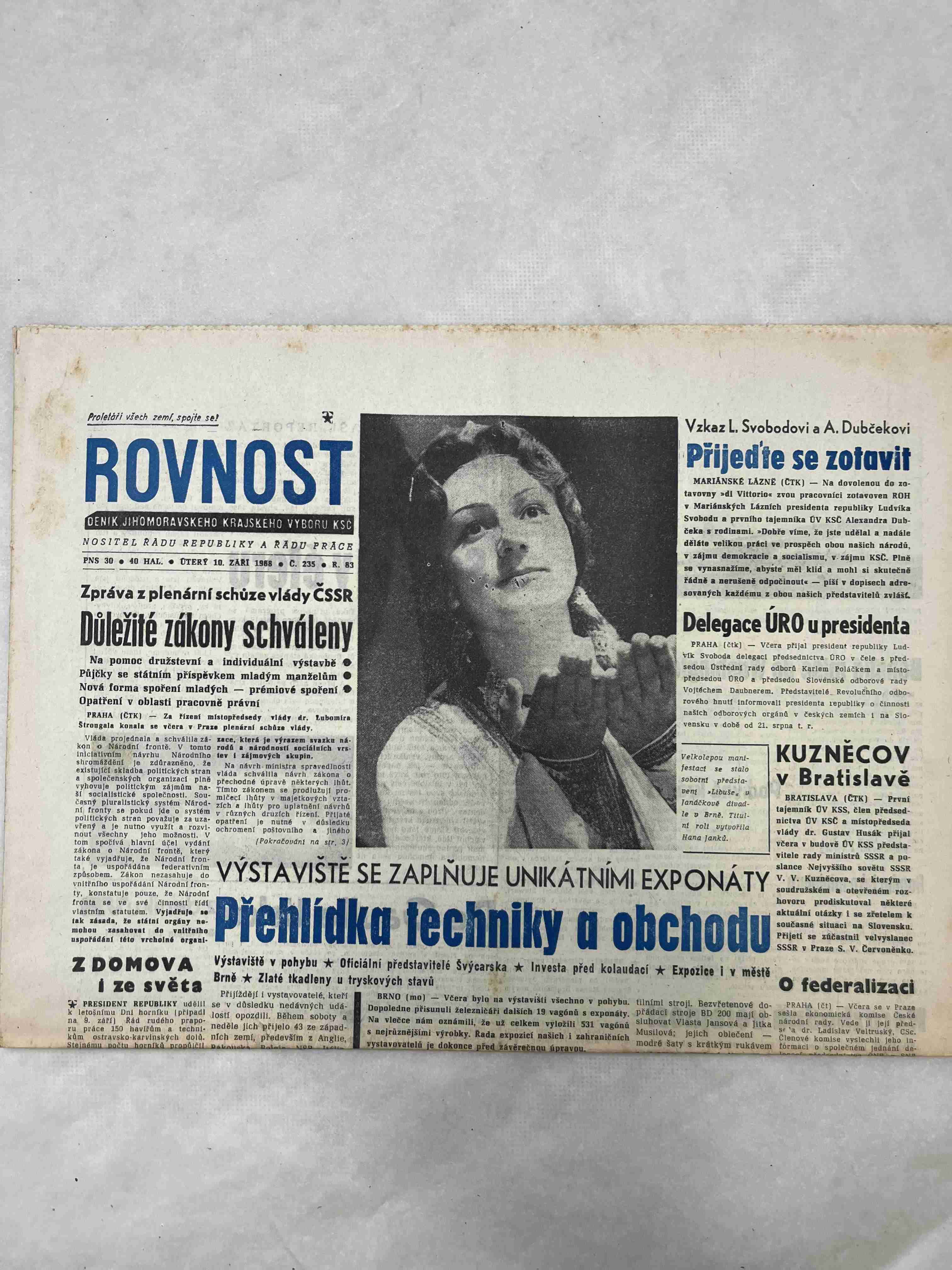 Originální dobový výtisk novin, nejedná se o reprodukci!