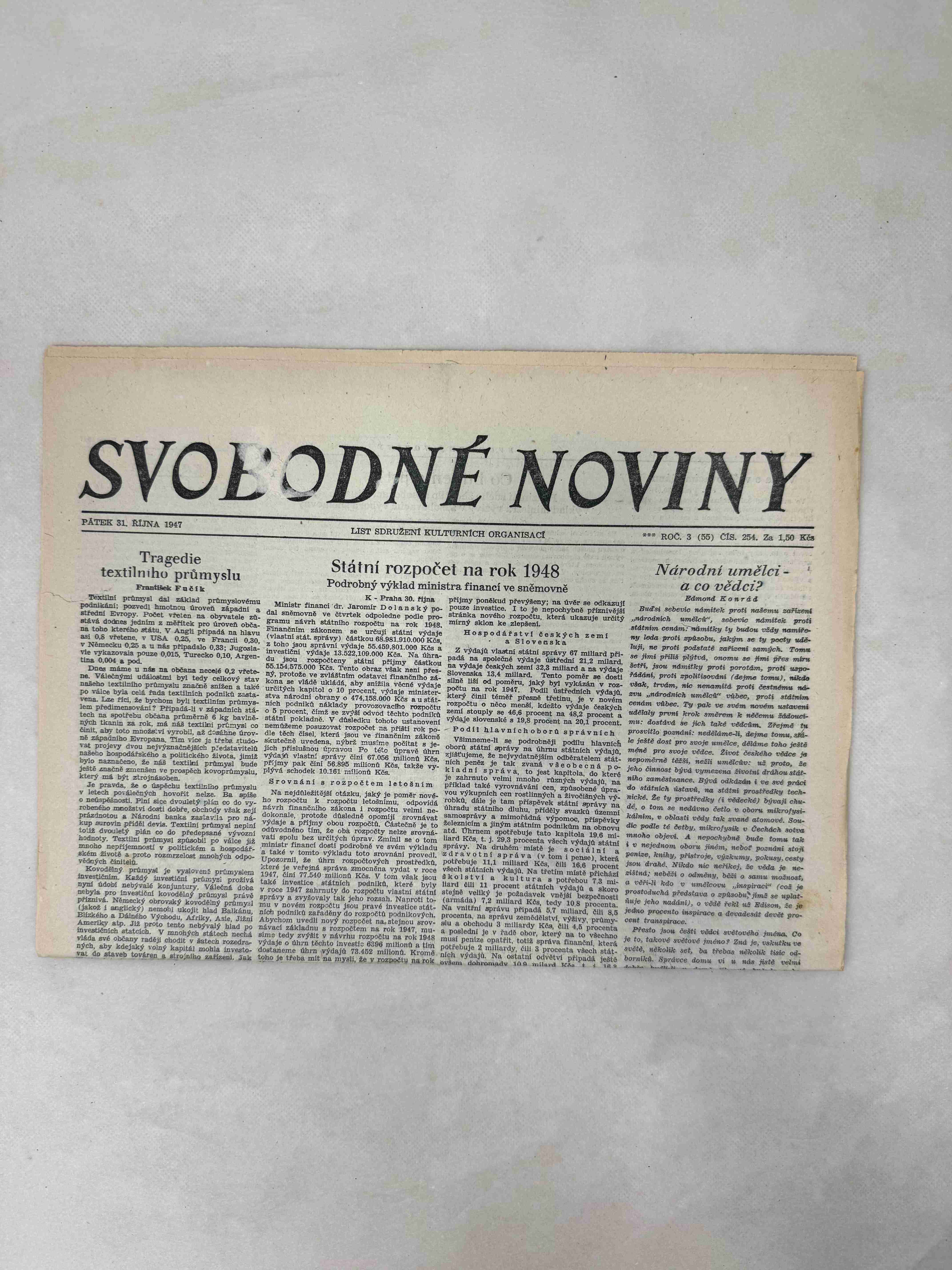 Originální dobový výtisk novin, nejedná se o reprodukci!
