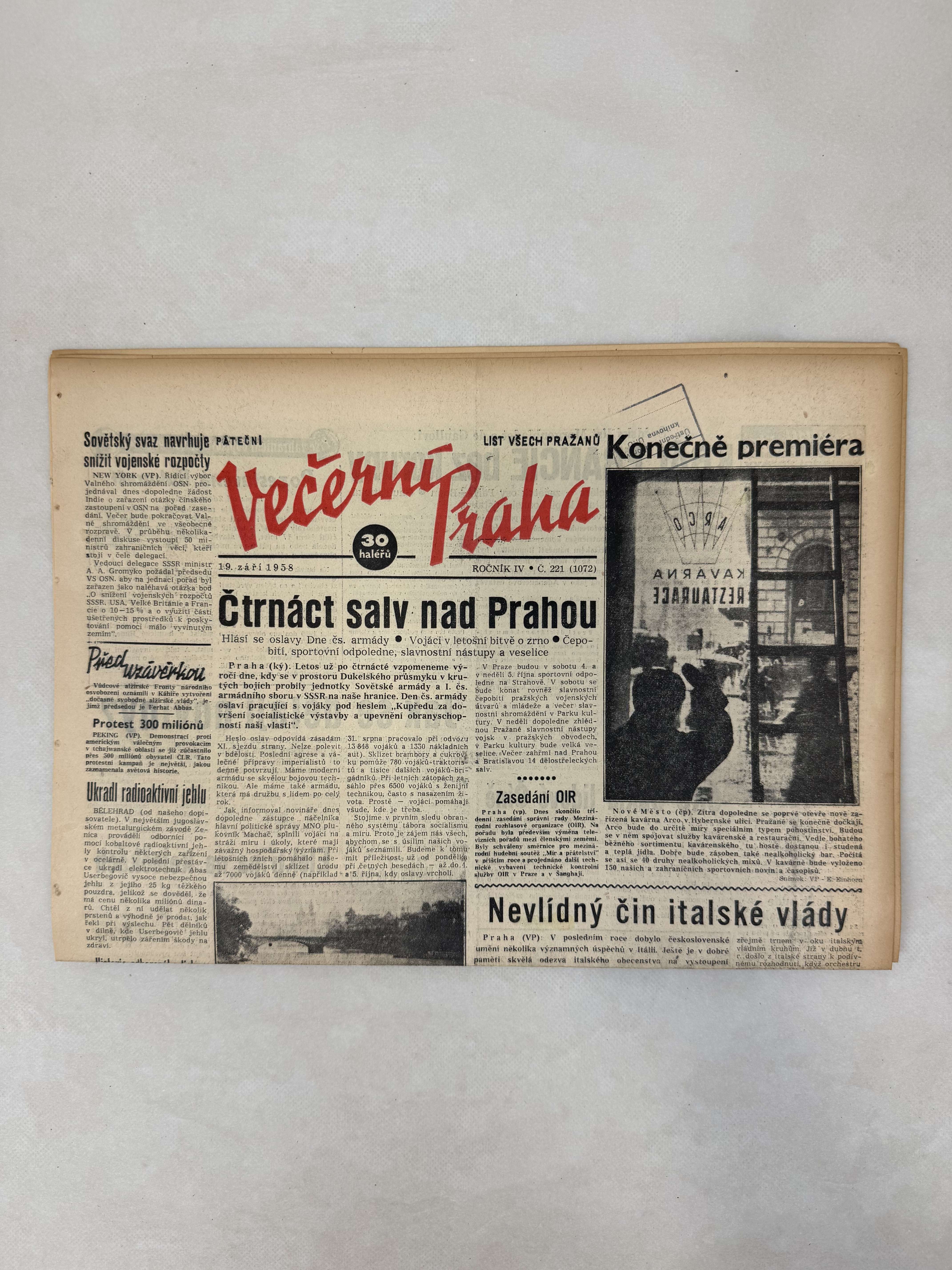 Večerní Praha 19.9.1958