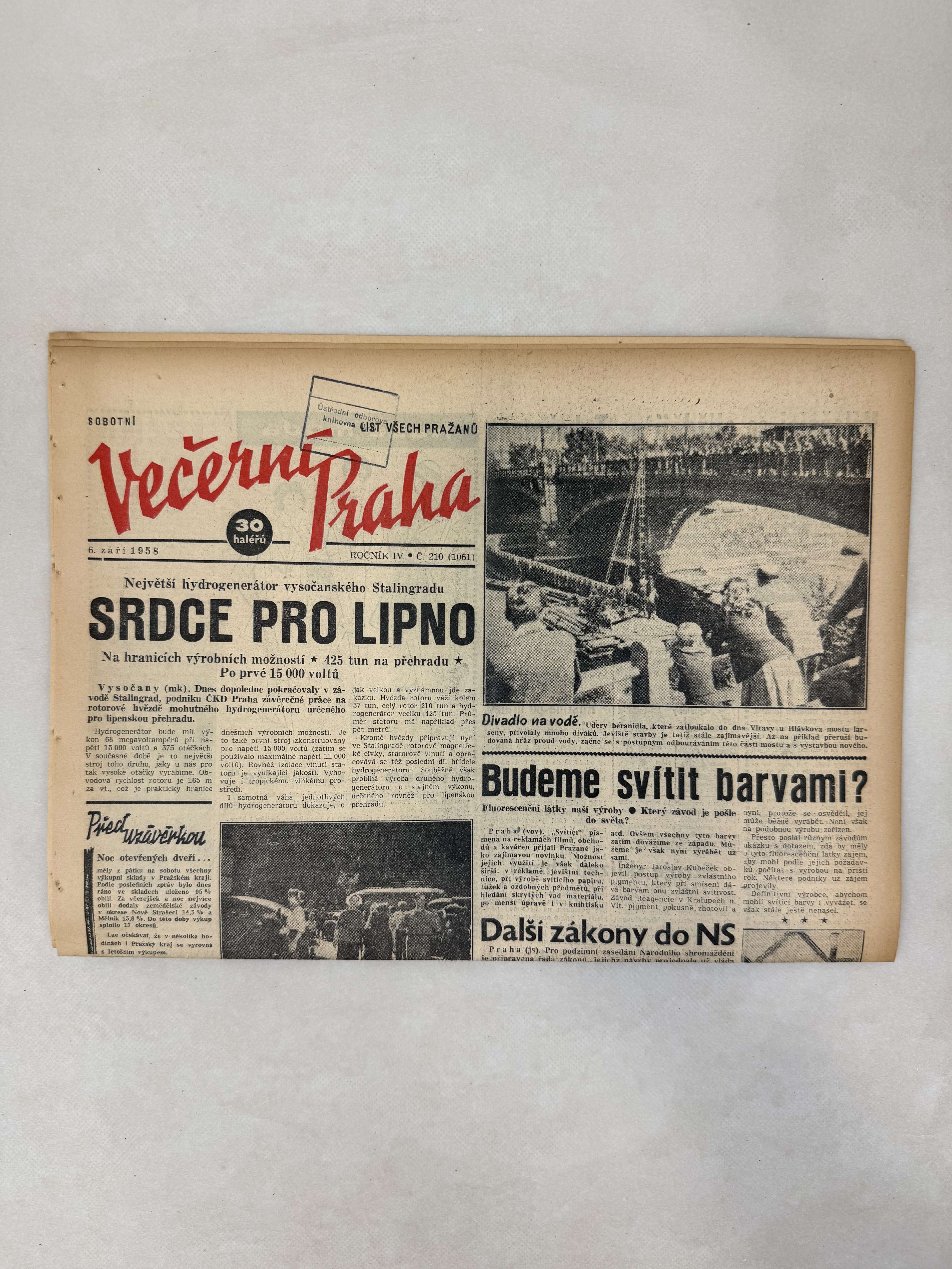 Večerní Praha 6.9.1958