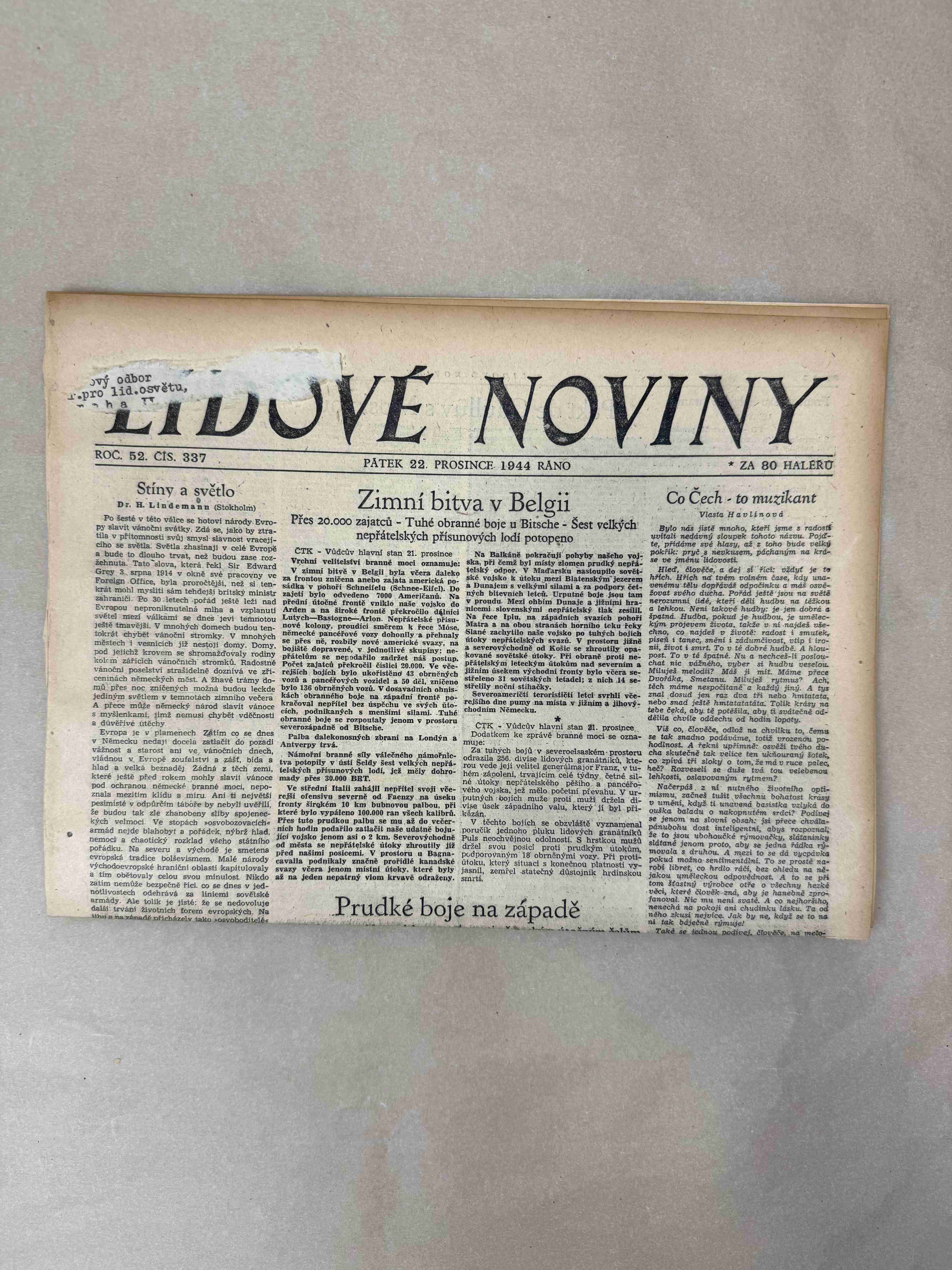 Originální dobový výtisk novin, nejedná se o reprodukci!