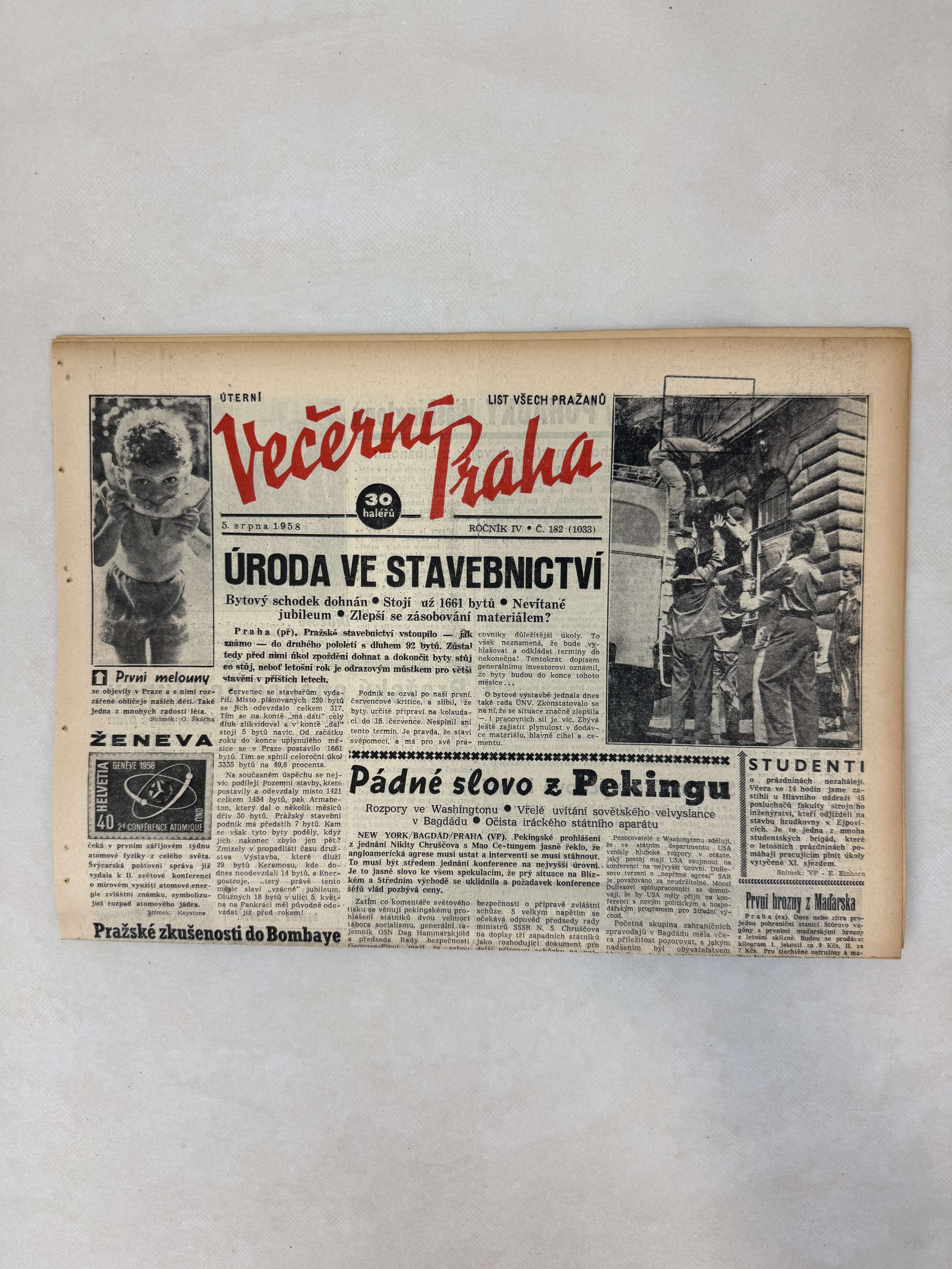 Večerní Praha 5.8.1958