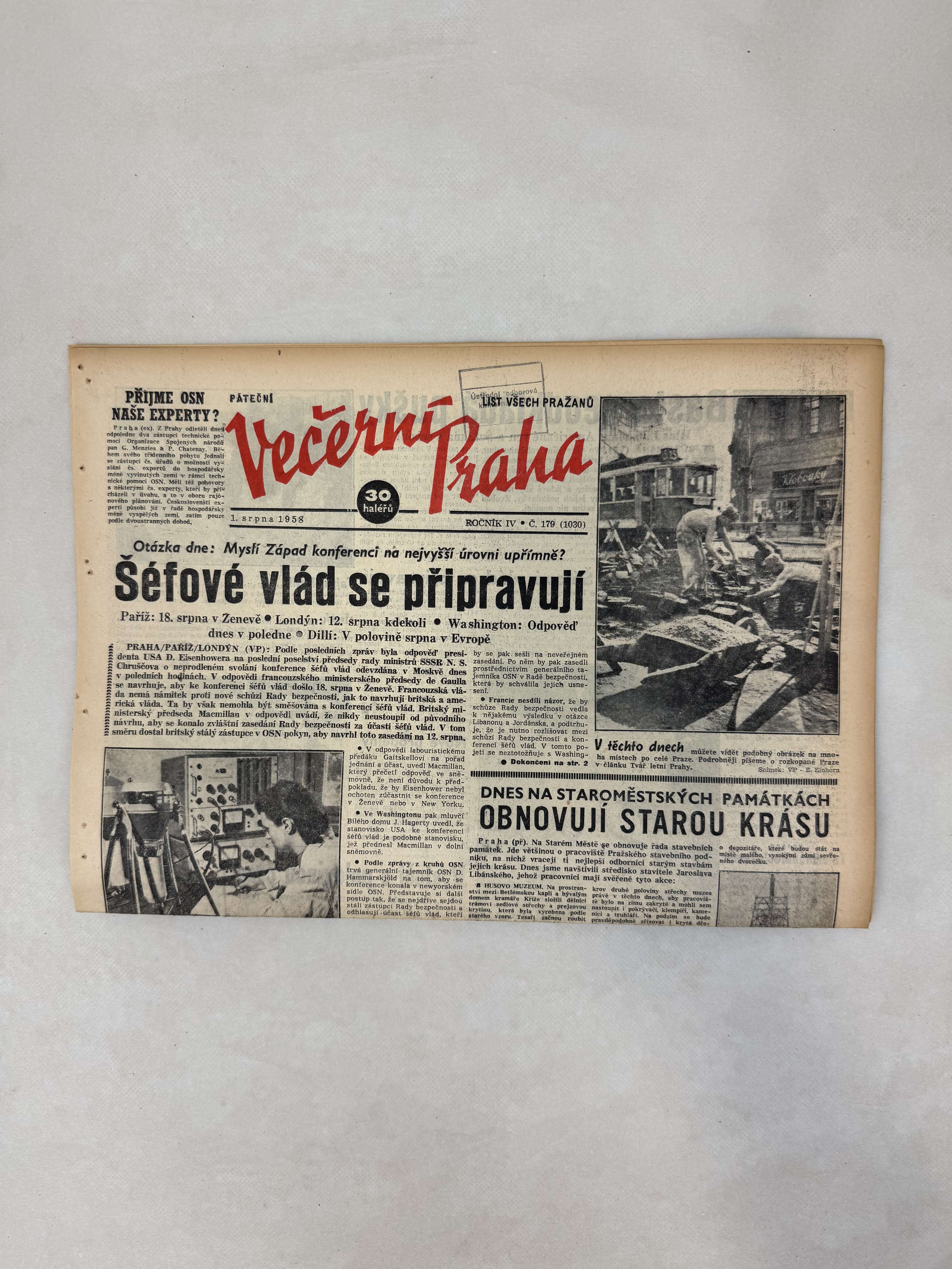 Večerní Praha 1.8.1958