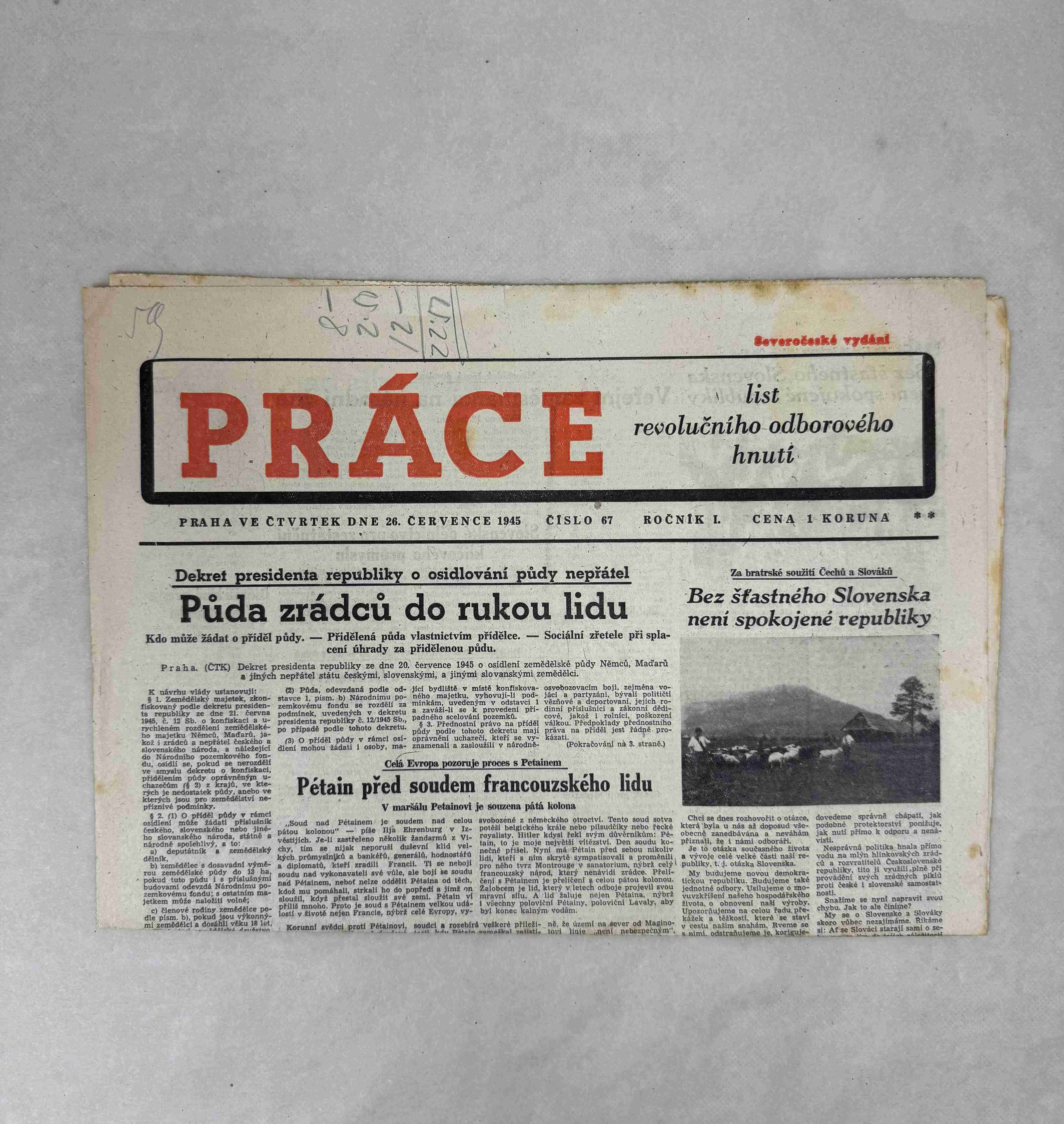 Nabízené noviny jsou určeny výhradně ke sběratelským účelům a neslouží k propagaci jakéhokoliv hnutí směřujícího k potlačení práv a svobod člověka (nacistického, komunistického apod.). Prodávající se distancuje od výše uvedených hnutí a jejich myšlenek.