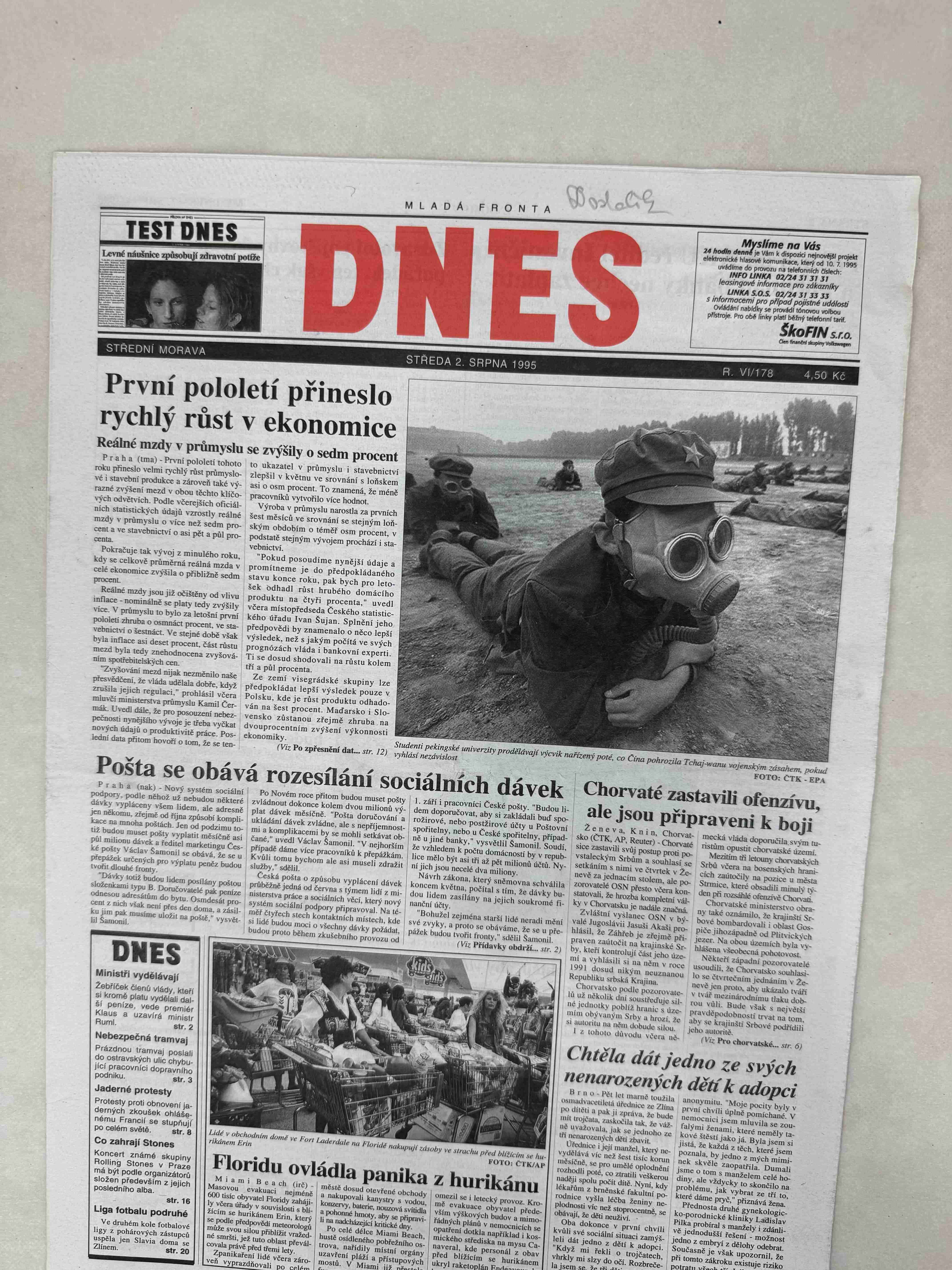 Originální dobový výtisk novin, nejedná se o reprodukci!