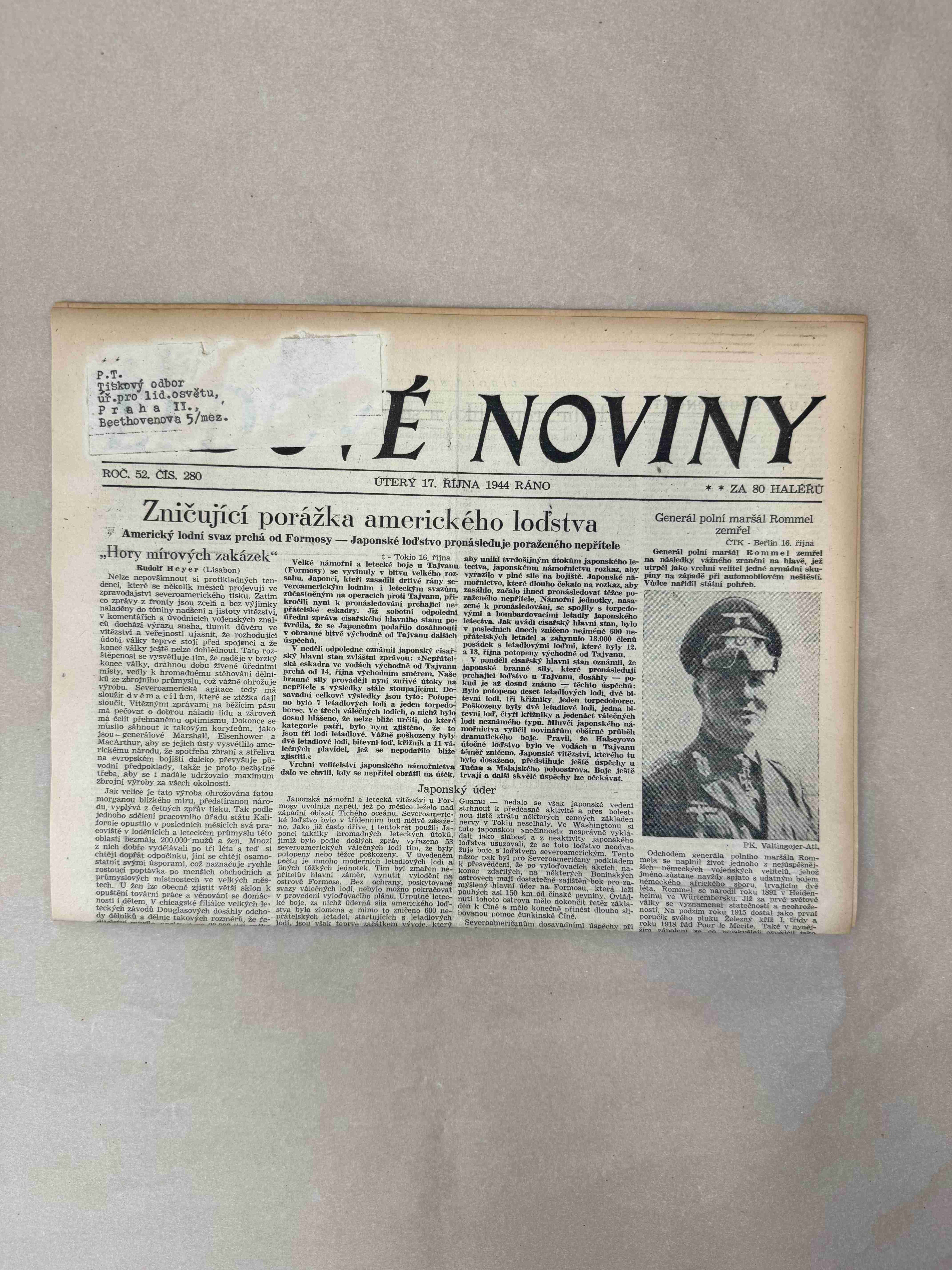 Nabízené noviny jsou určeny výhradně ke sběratelským účelům a neslouží k propagaci jakéhokoliv hnutí směřujícího k potlačení práv a svobod člověka (nacistického, komunistického apod.). Prodávající se distancuje od výše uvedených hnutí a jejich myšlenek.