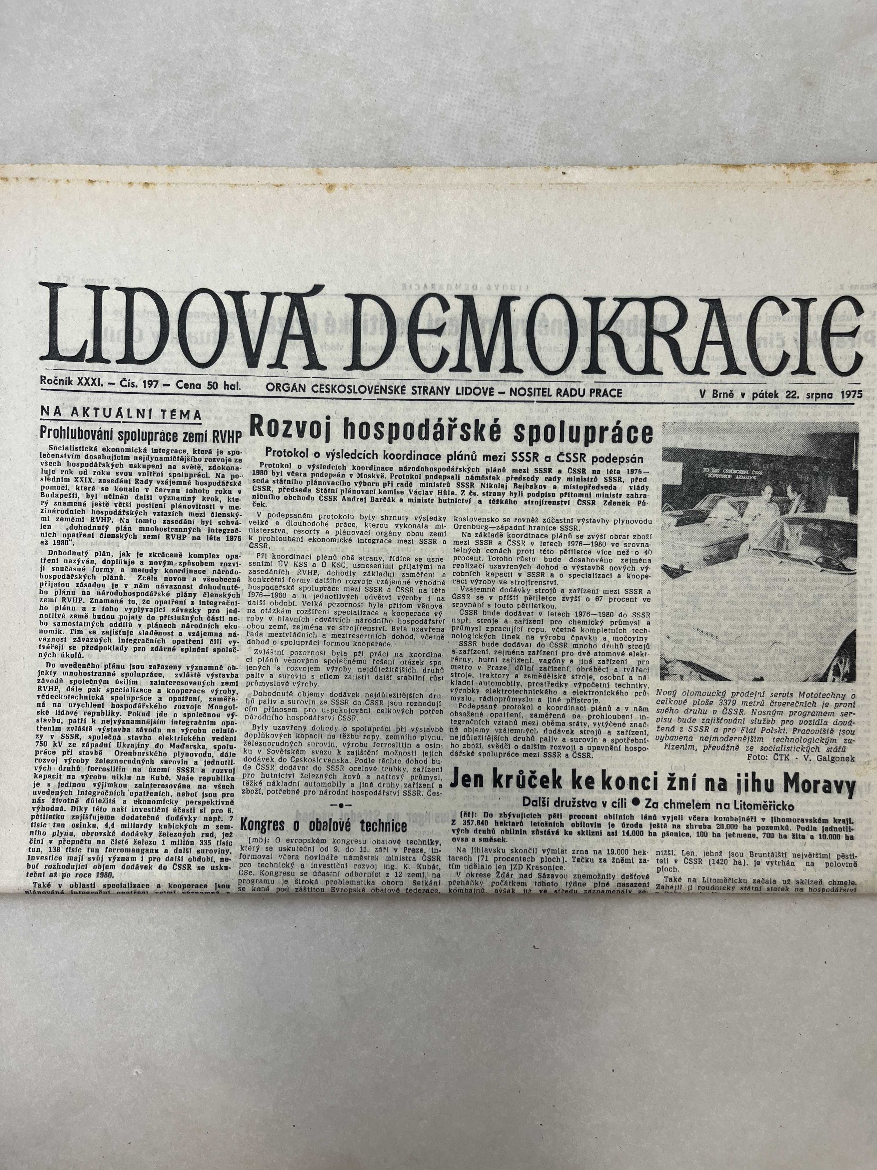 Noviny Lidová demokracie 22.8.1975