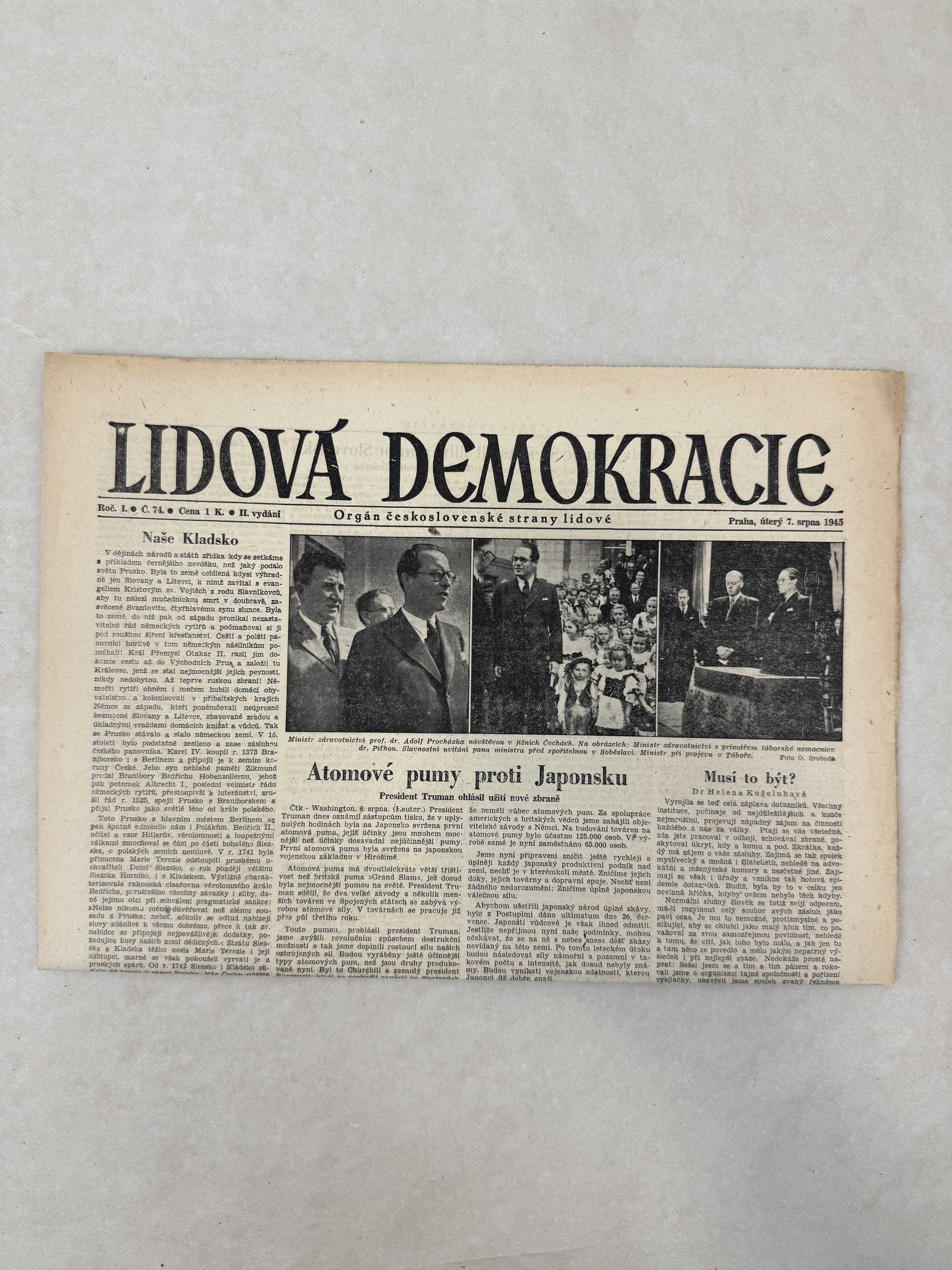 Originální dobový výtisk novin, nejedná se o reprodukci!