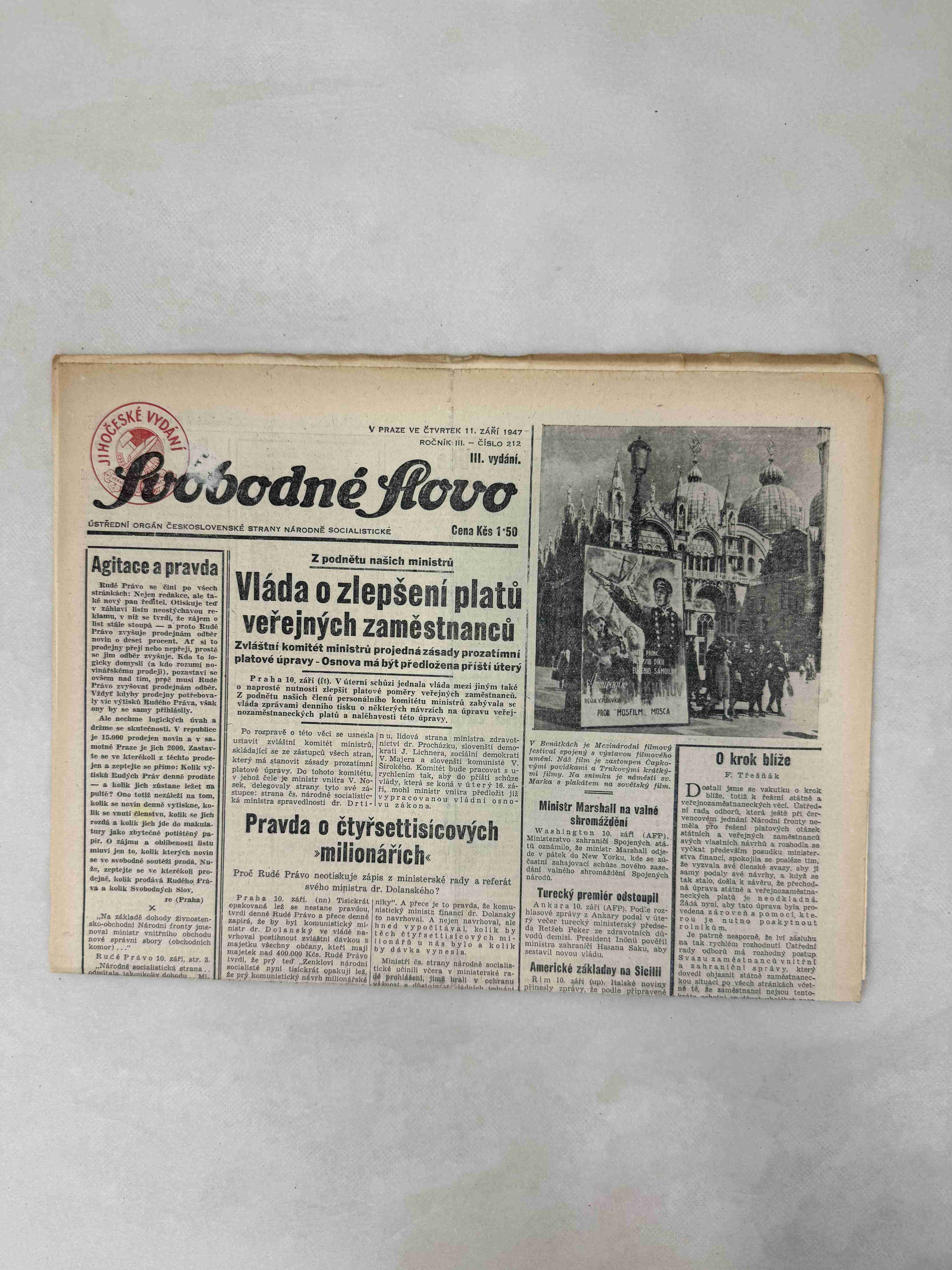 Originální dobový výtisk novin, nejedná se o reprodukci!