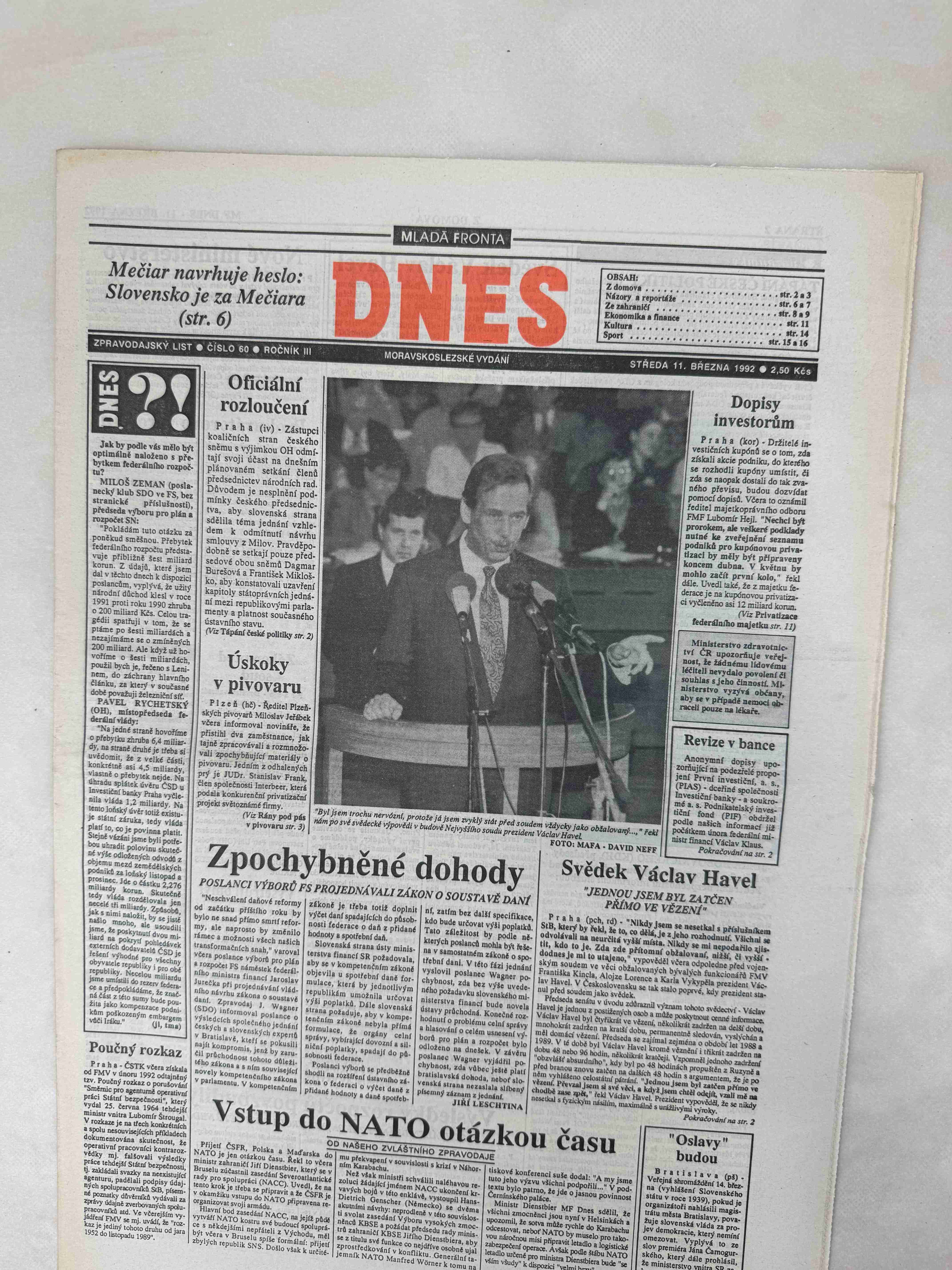 Originální dobový výtisk novin, nejedná se o reprodukci!