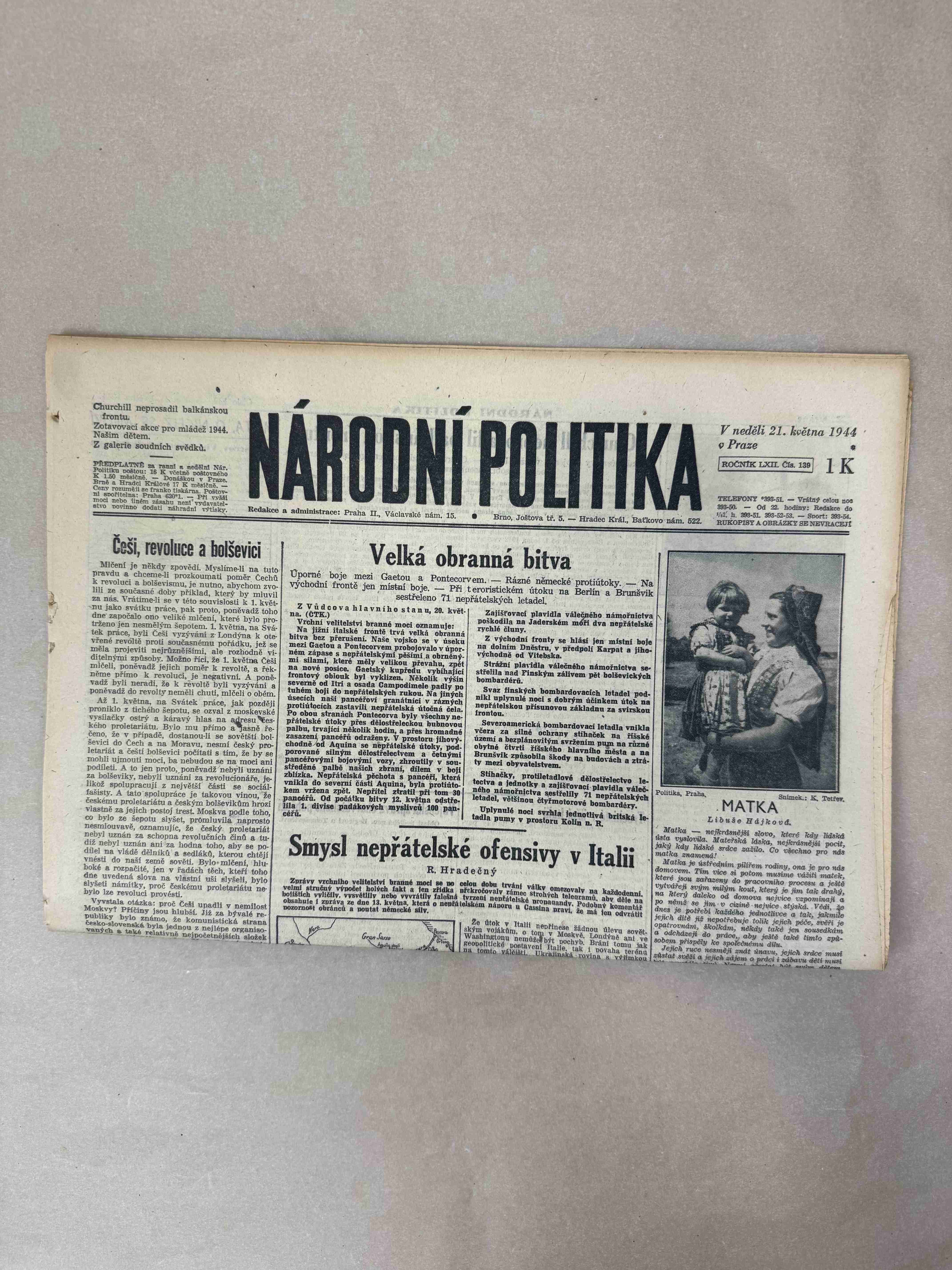 Originální dobový výtisk novin, nejedná se o reprodukci!