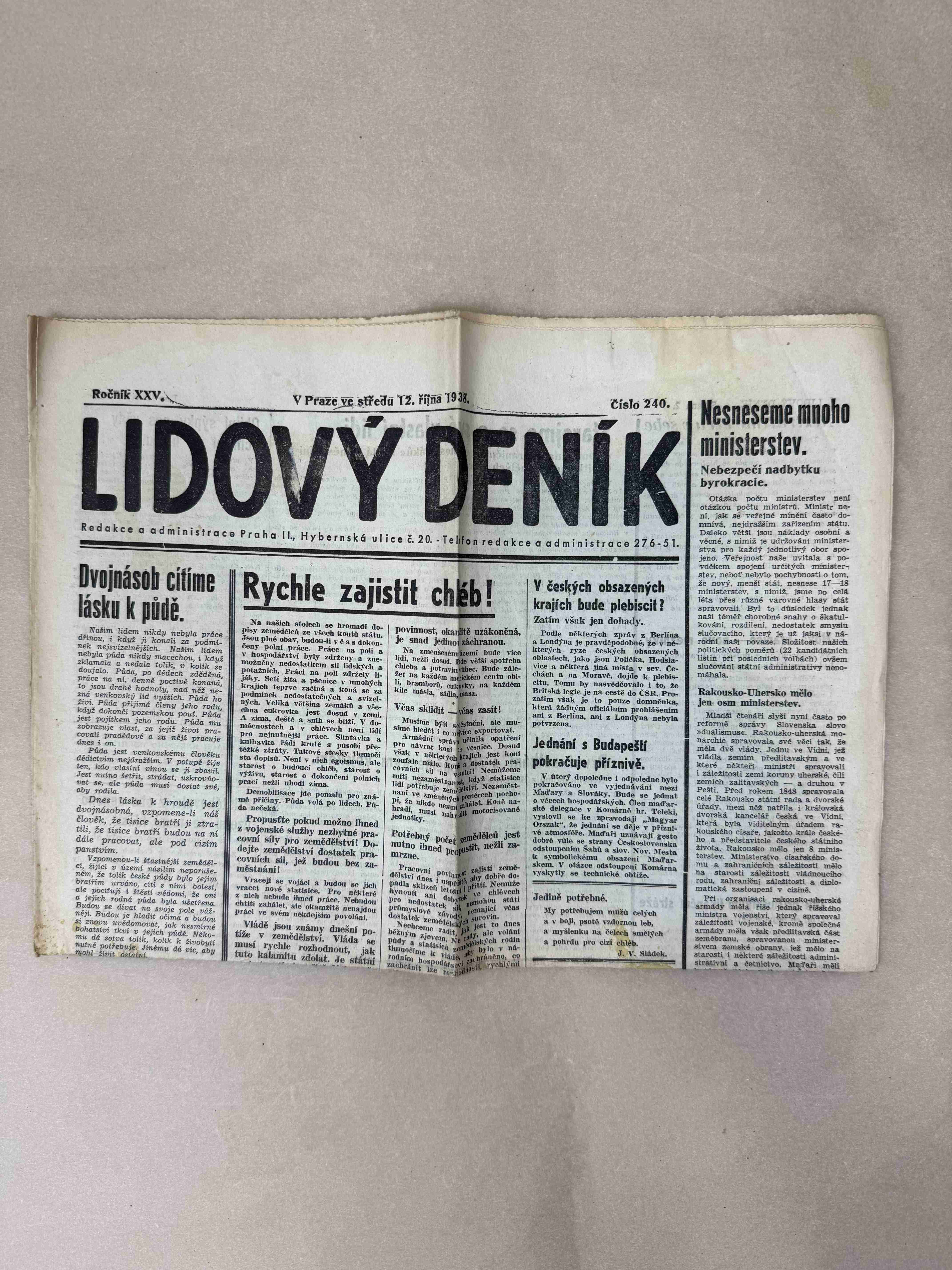 Originální dobový výtisk novin, nejedná se o reprodukci!