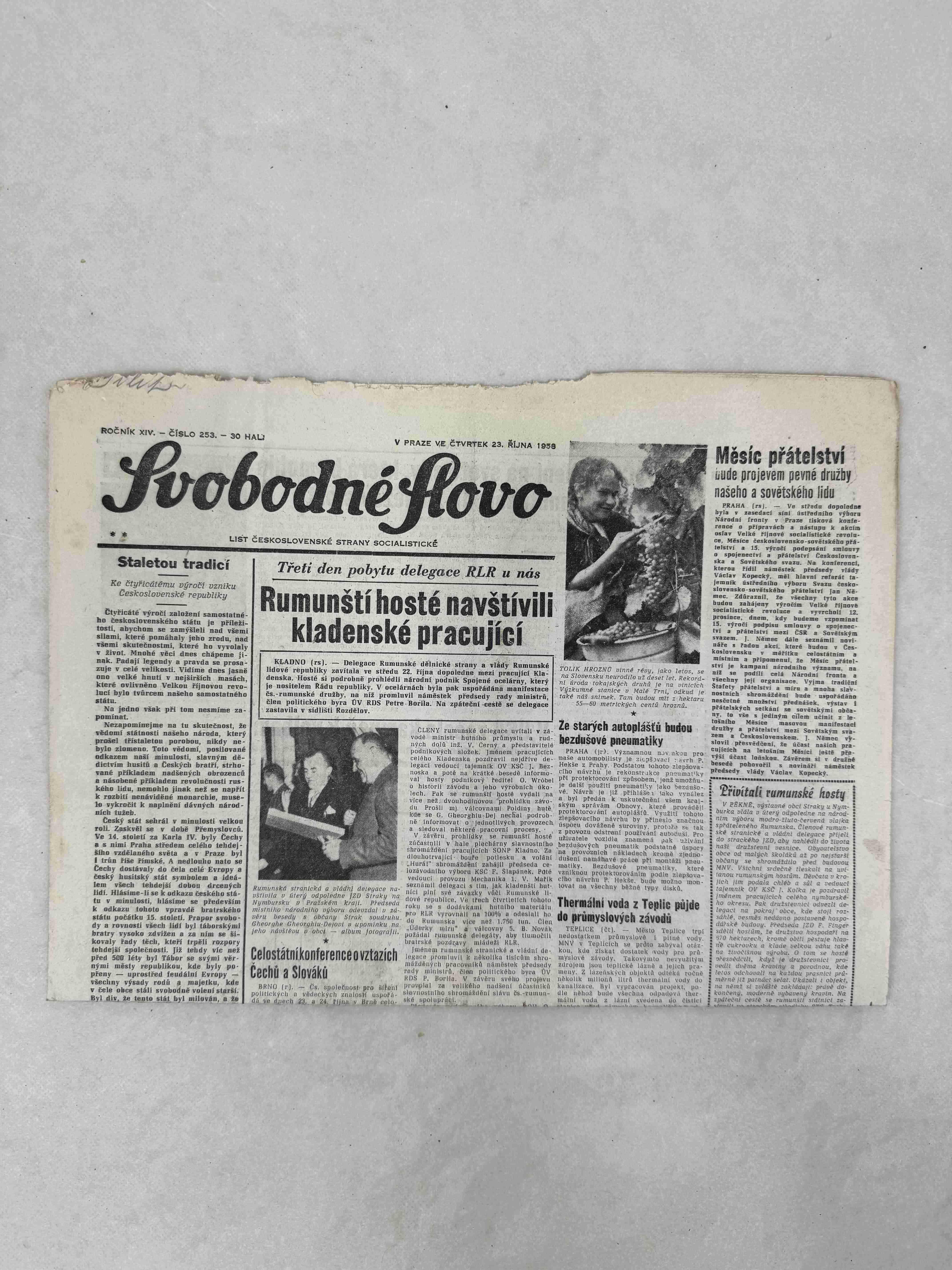 Originální dobový výtisk novin, nejedná se o reprodukci!