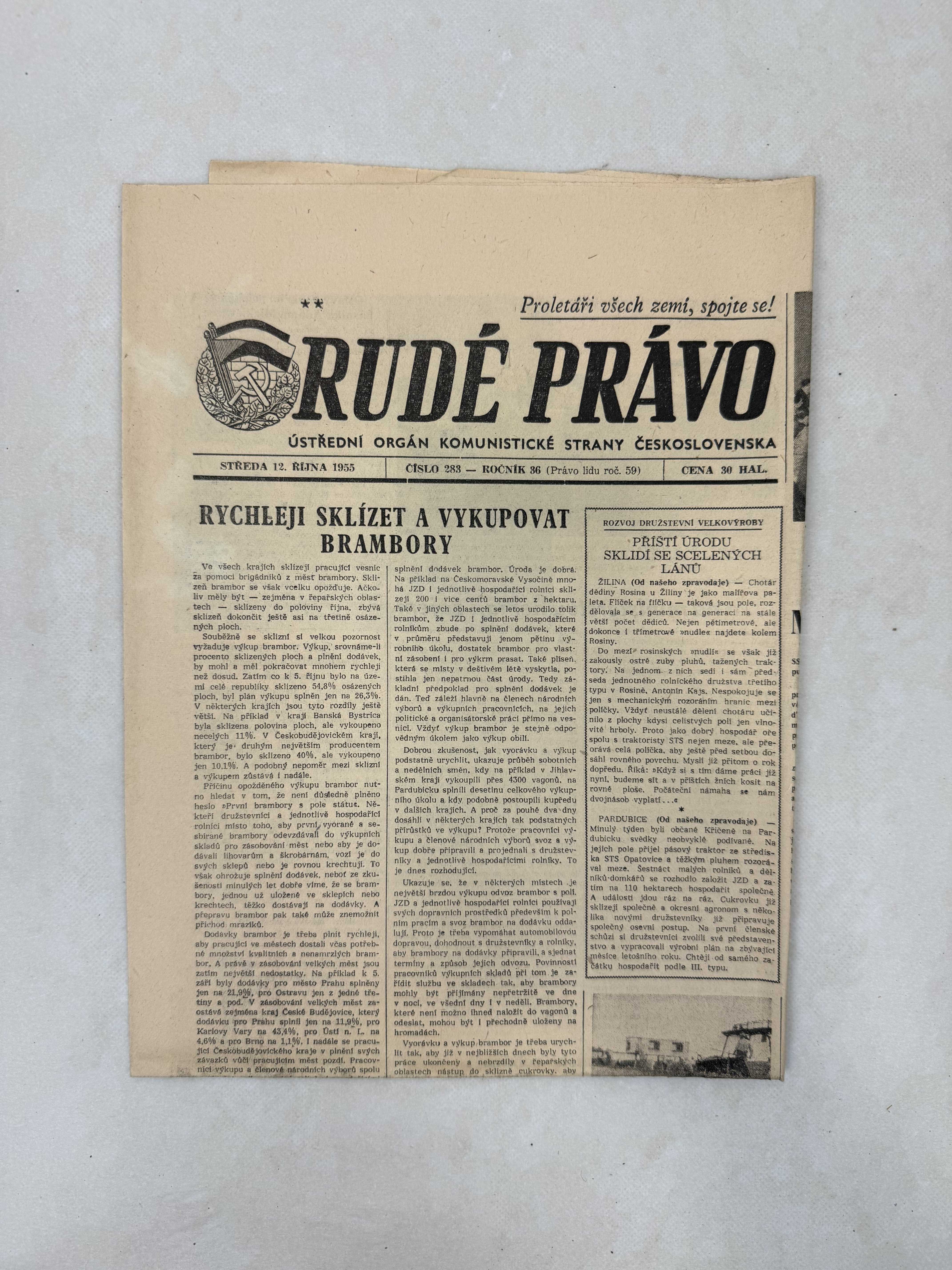 Originální dobový výtisk novin, nejedná se o reprodukci!