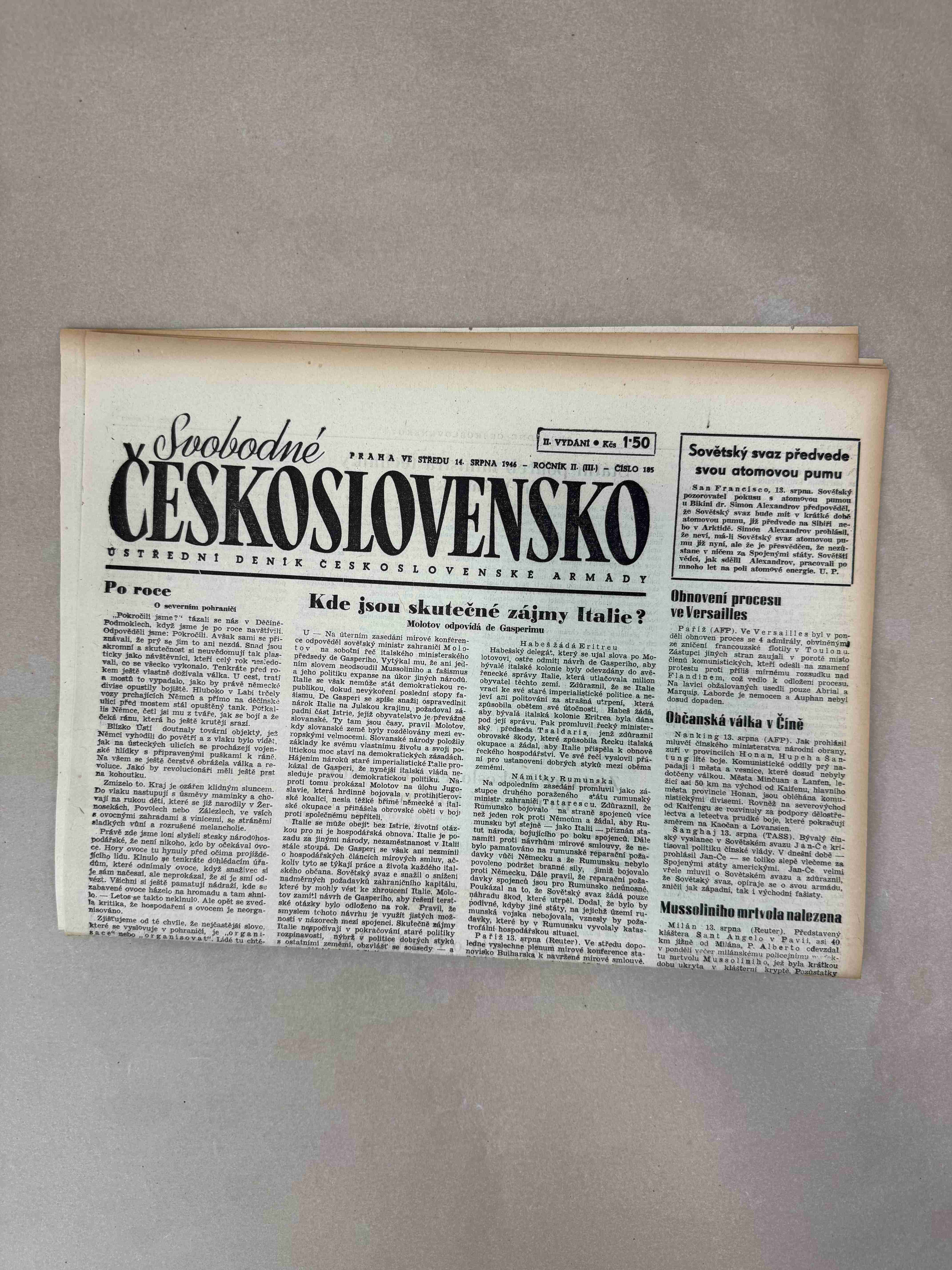 Originální dobový výtisk novin, nejedná se o reprodukci!
