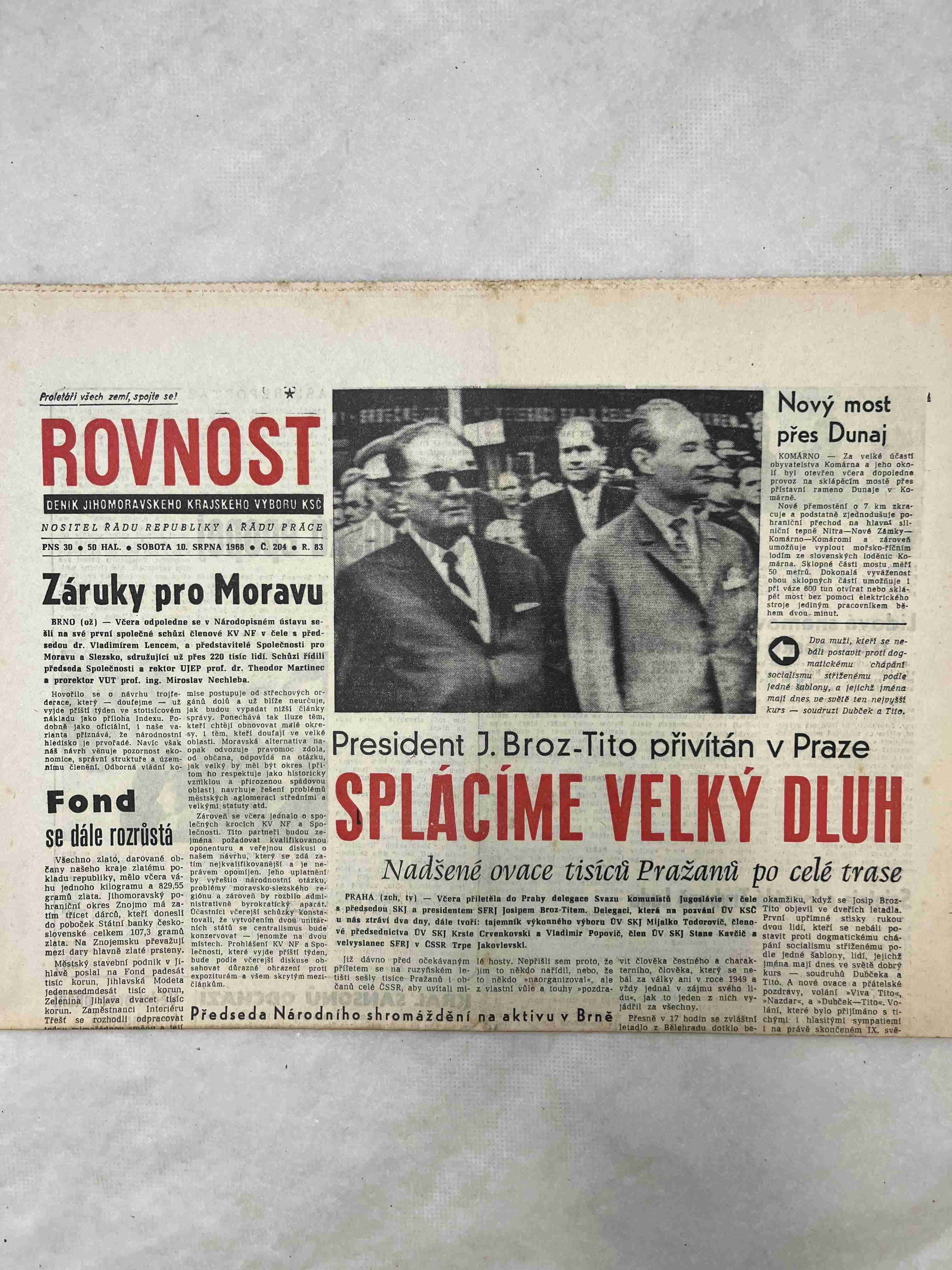 Originální dobový výtisk novin, nejedná se o reprodukci!