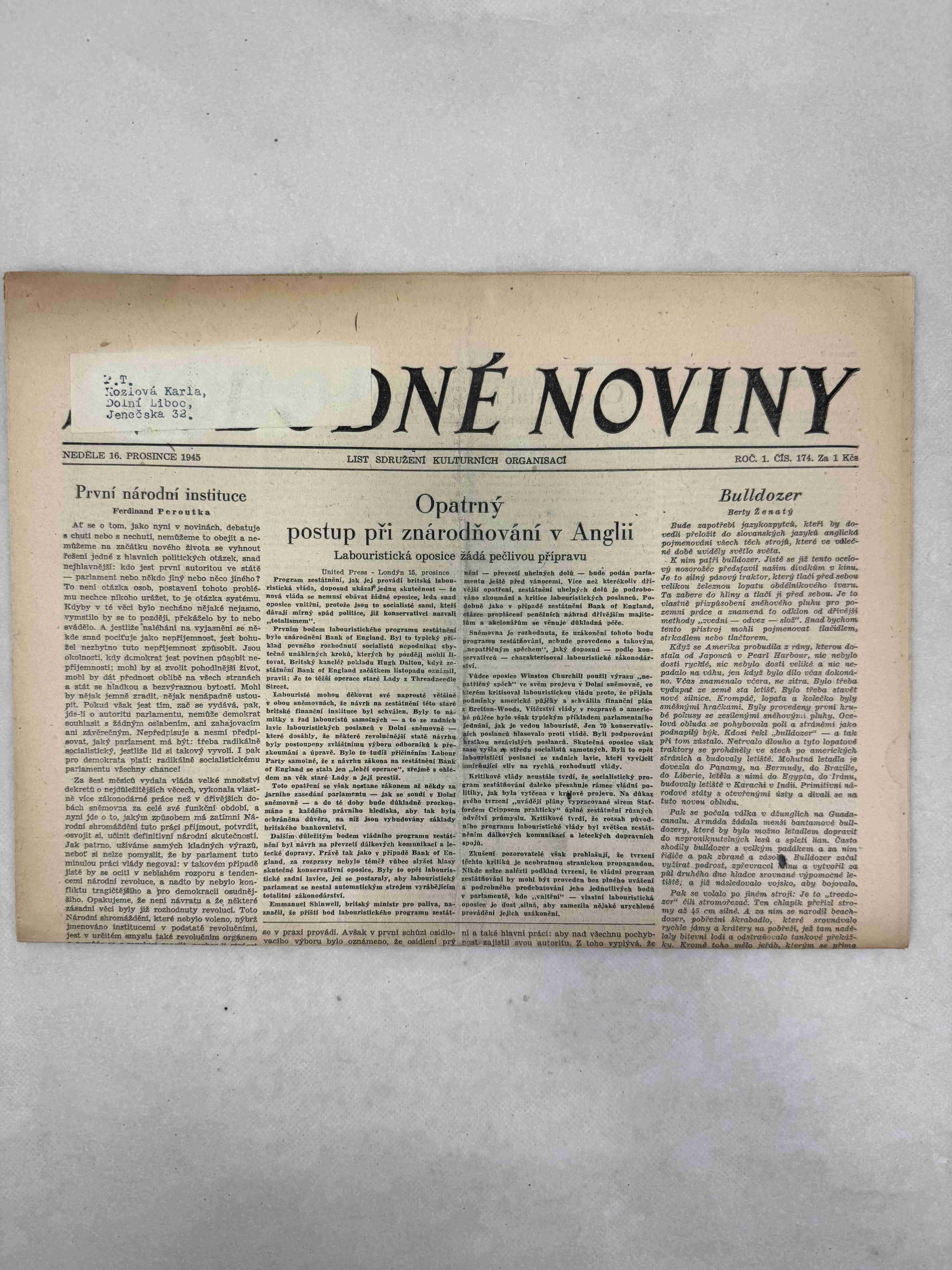 Originální dobový výtisk novin, nejedná se o reprodukci!