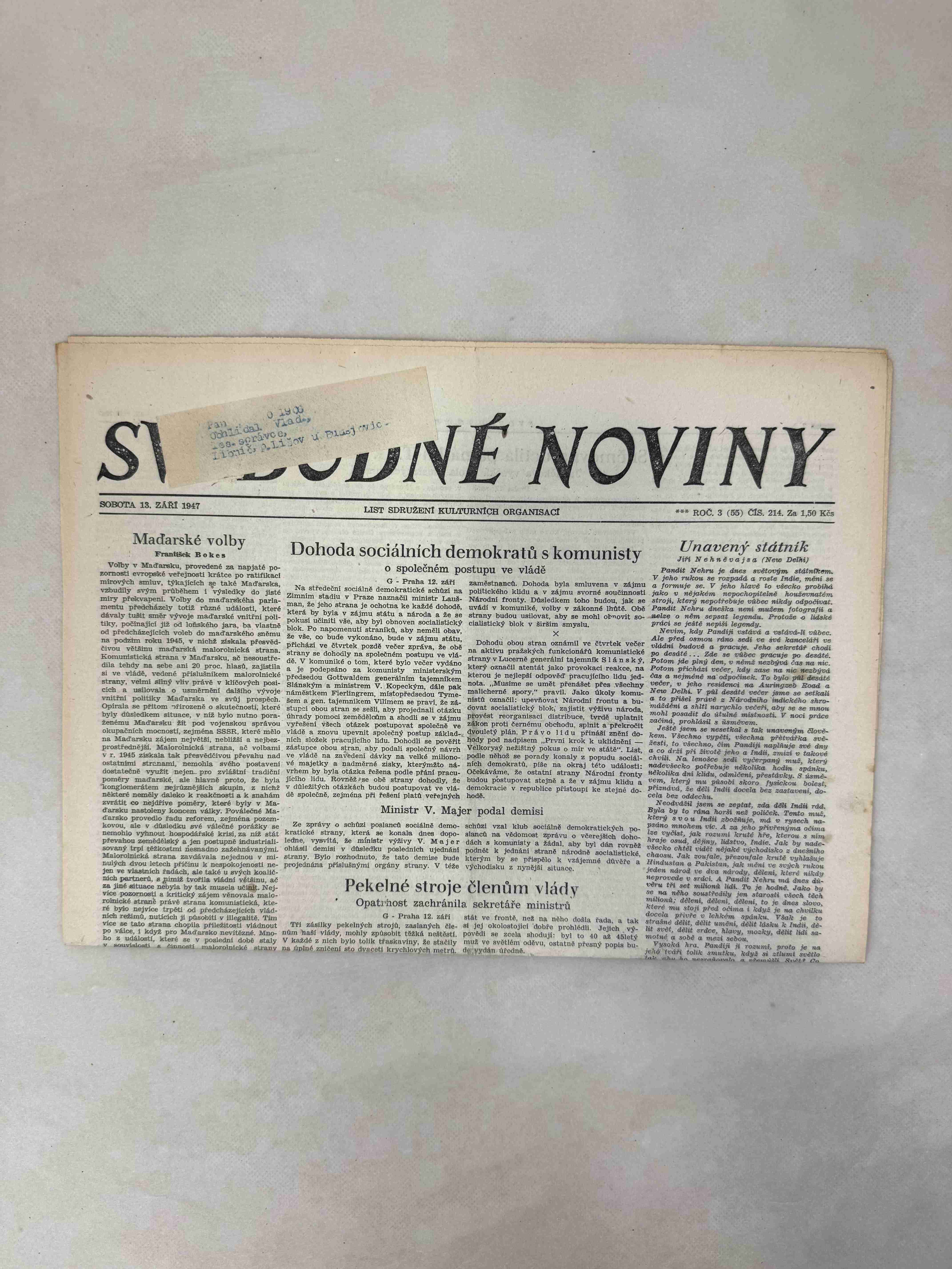 Nabízené noviny jsou určeny výhradně ke sběratelským účelům a neslouží k propagaci jakéhokoliv hnutí směřujícího k potlačení práv a svobod člověka (nacistického, komunistického apod.). Prodávající se distancuje od výše uvedených hnutí a jejich myšlenek.