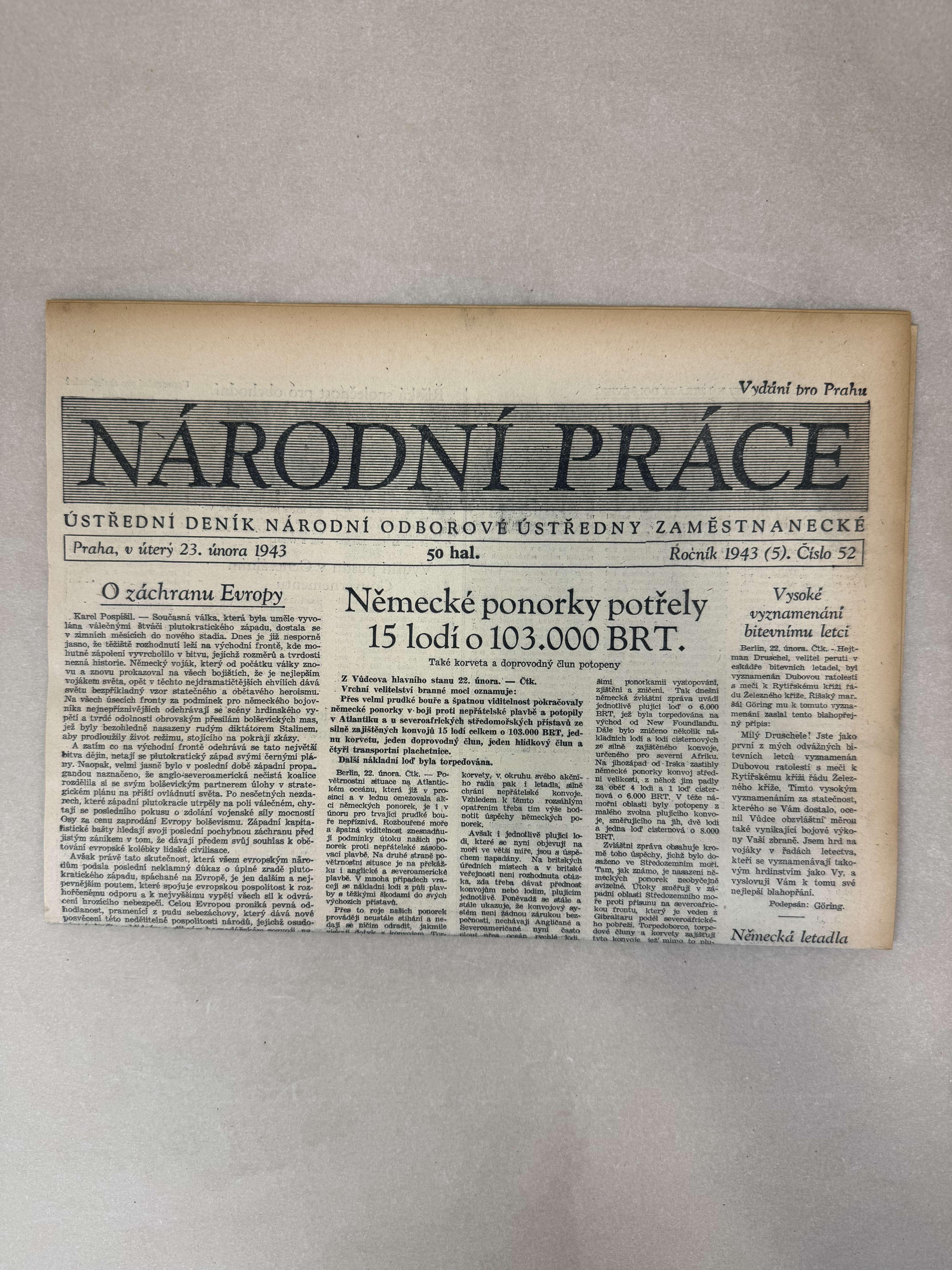 Národní práce 23.2.1943