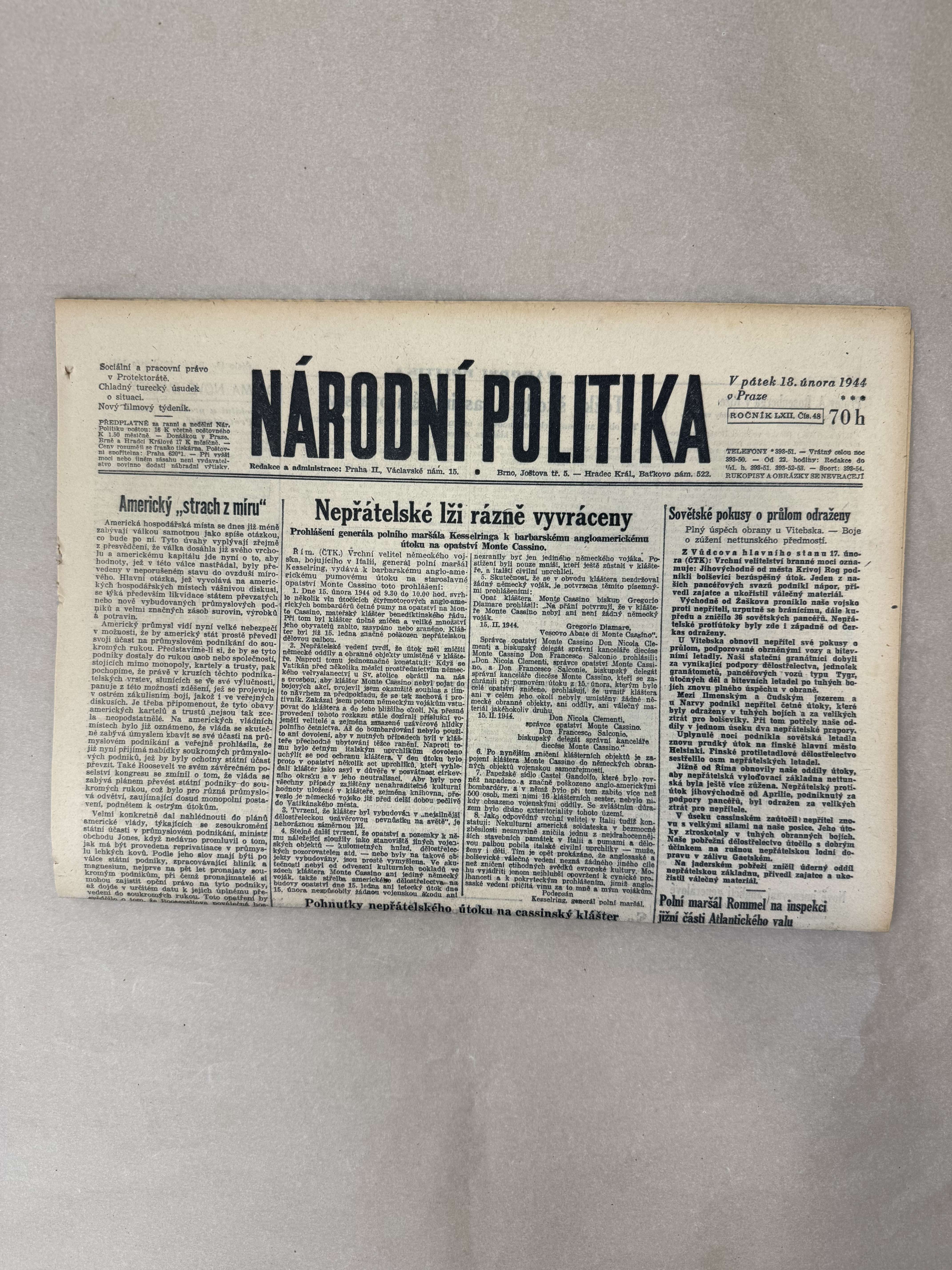 Národní politika 18.2.1944