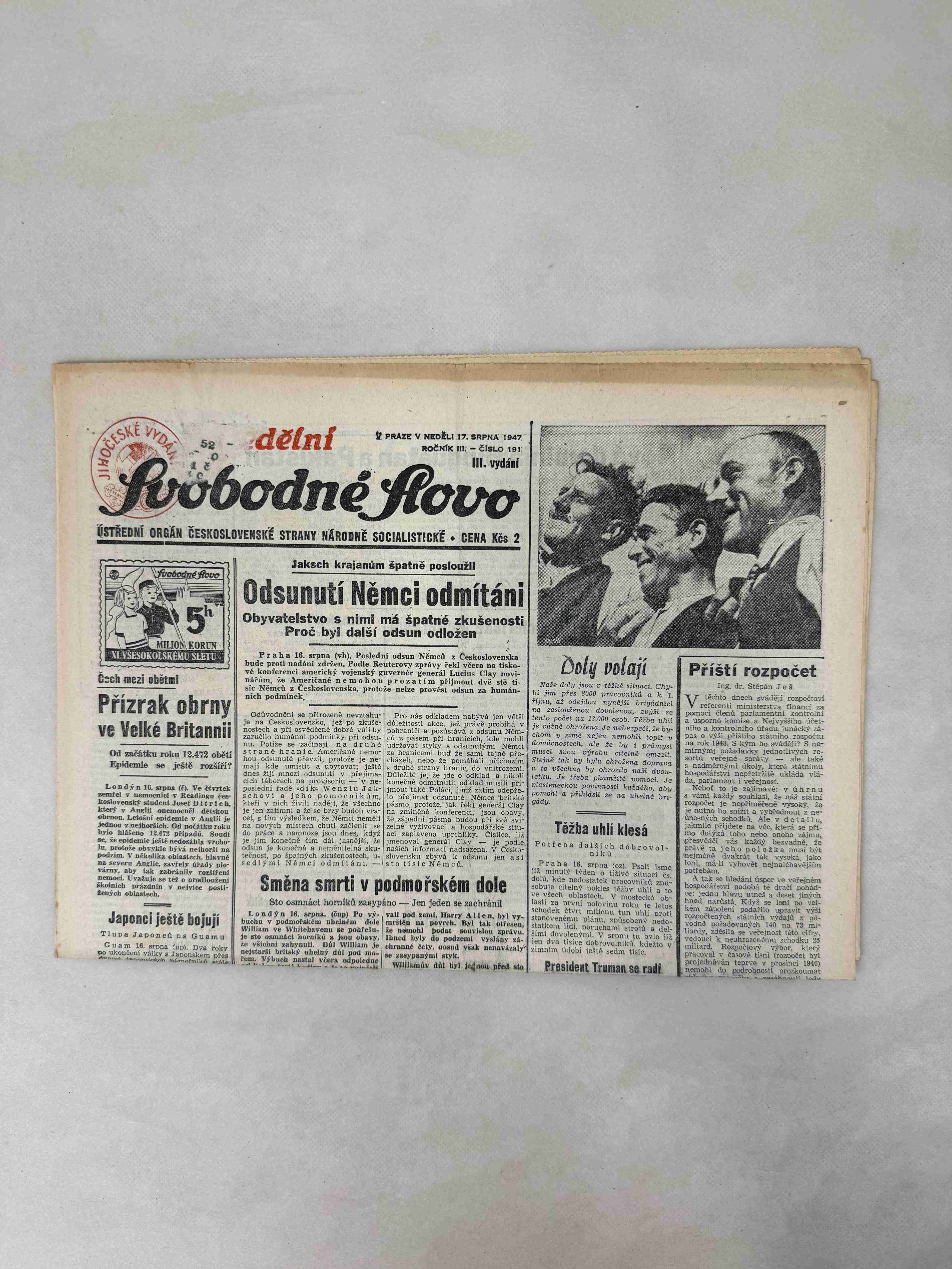 Originální dobový výtisk novin, nejedná se o reprodukci!