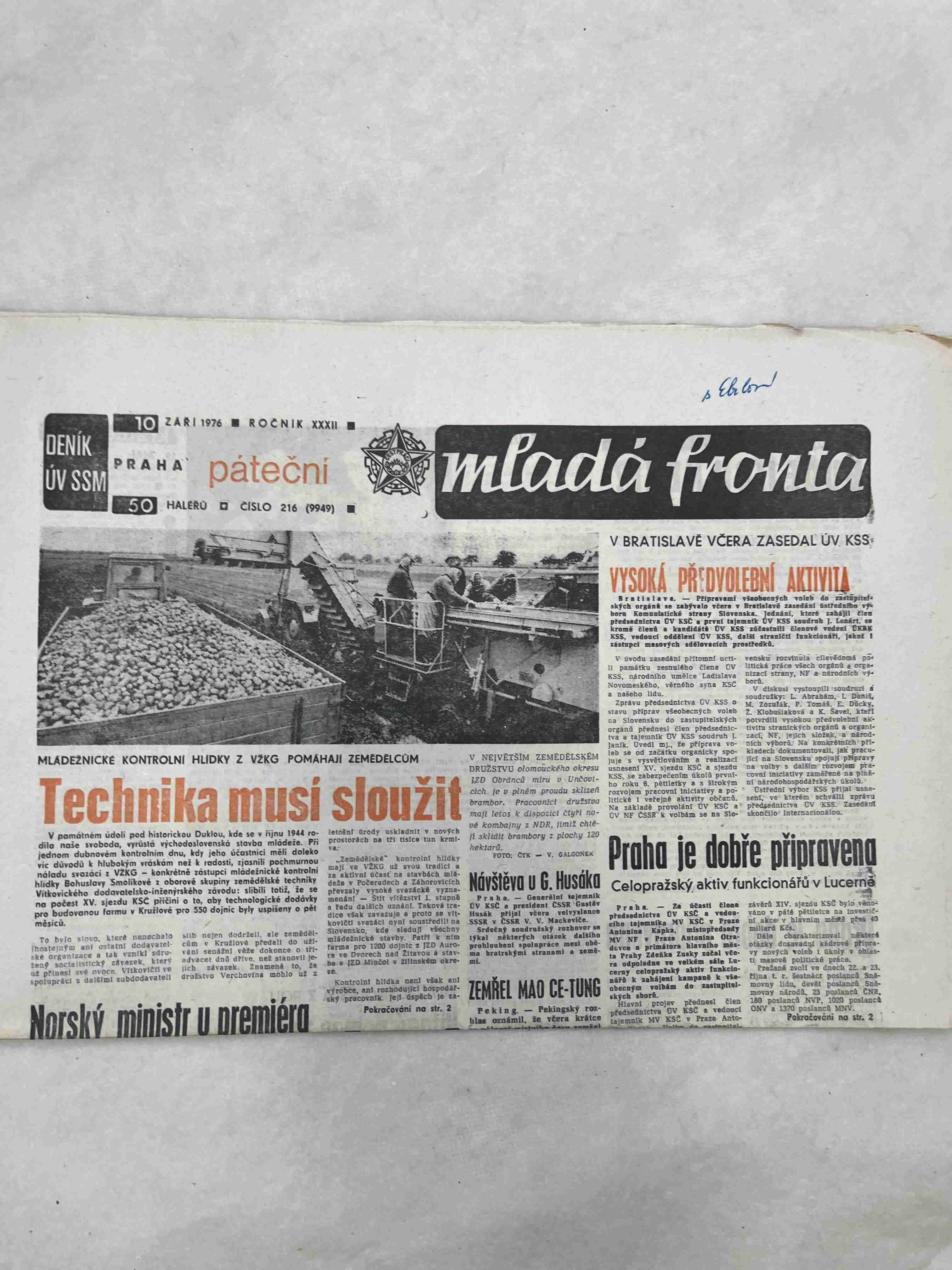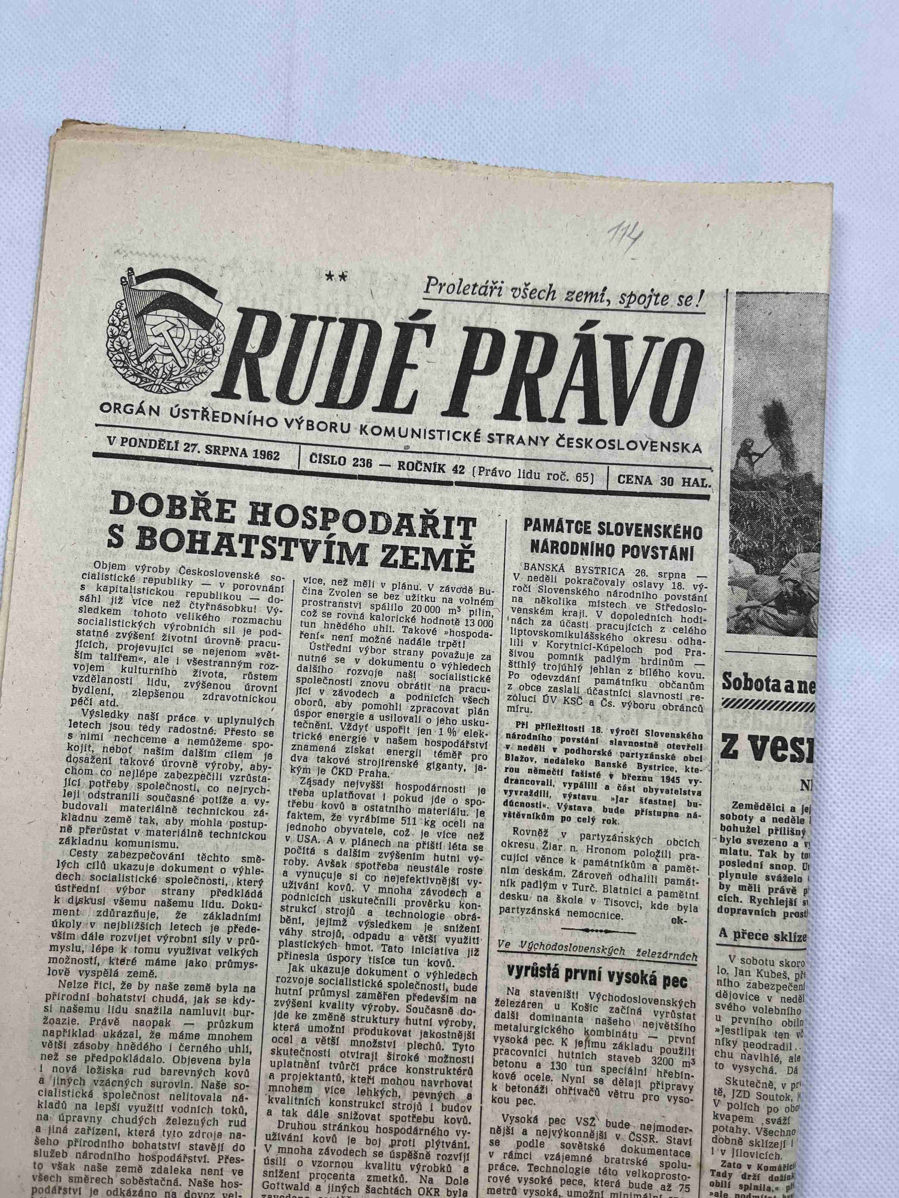 Originální dobový výtisk novin, nejedná se o reprodukci!