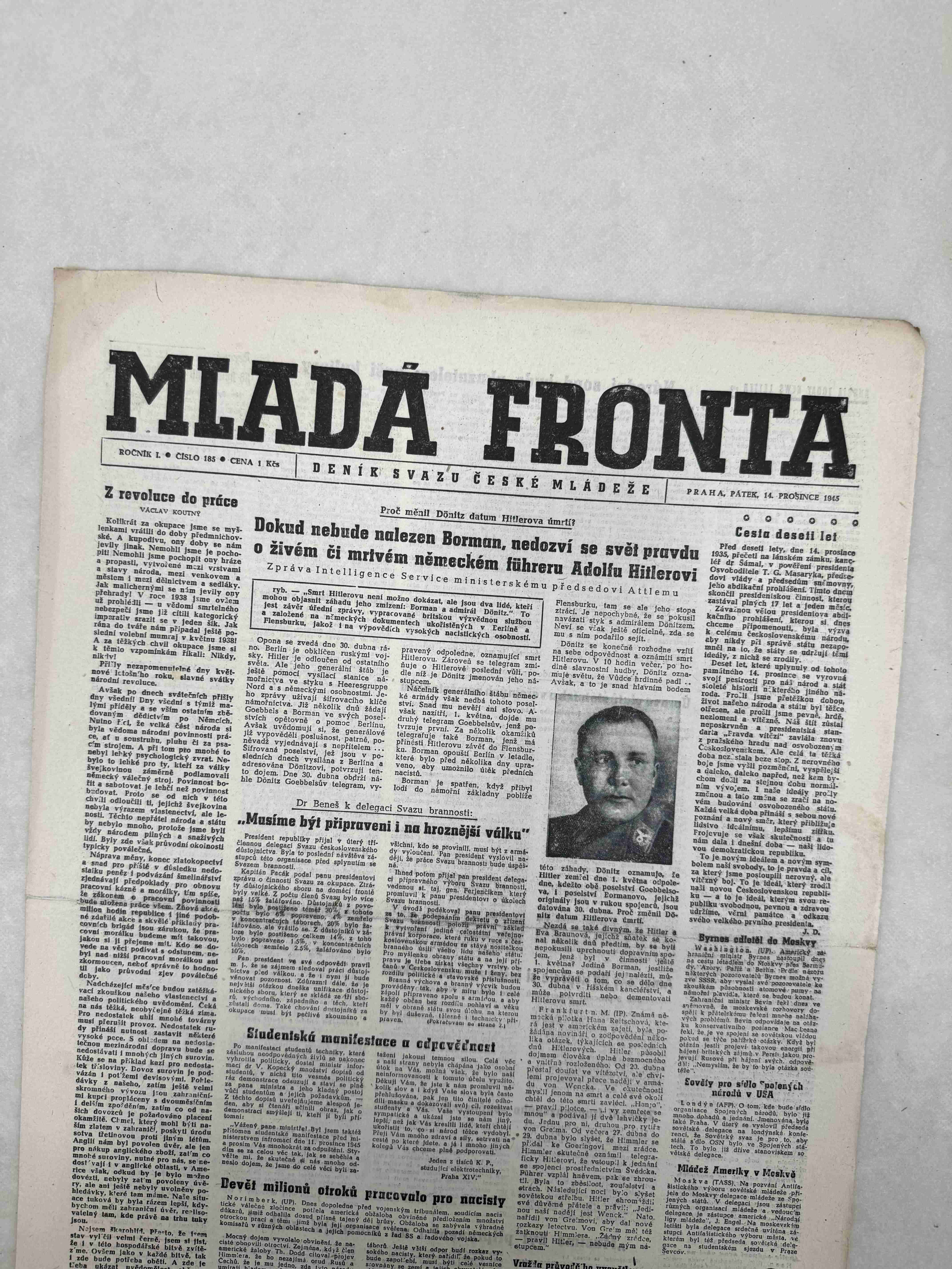 Originální dobový výtisk novin, nejedná se o reprodukci!