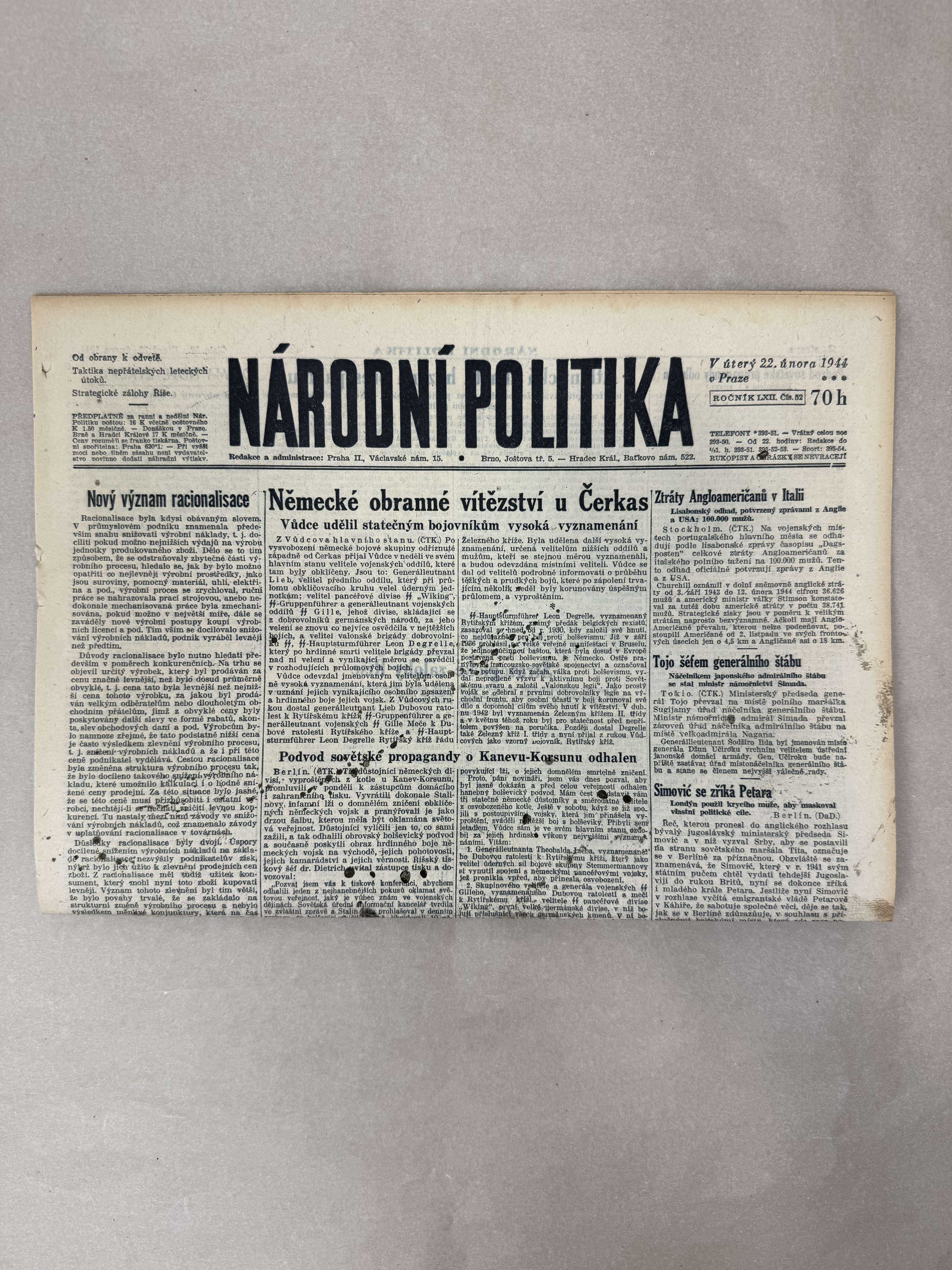 Národní politika 22.2.1944