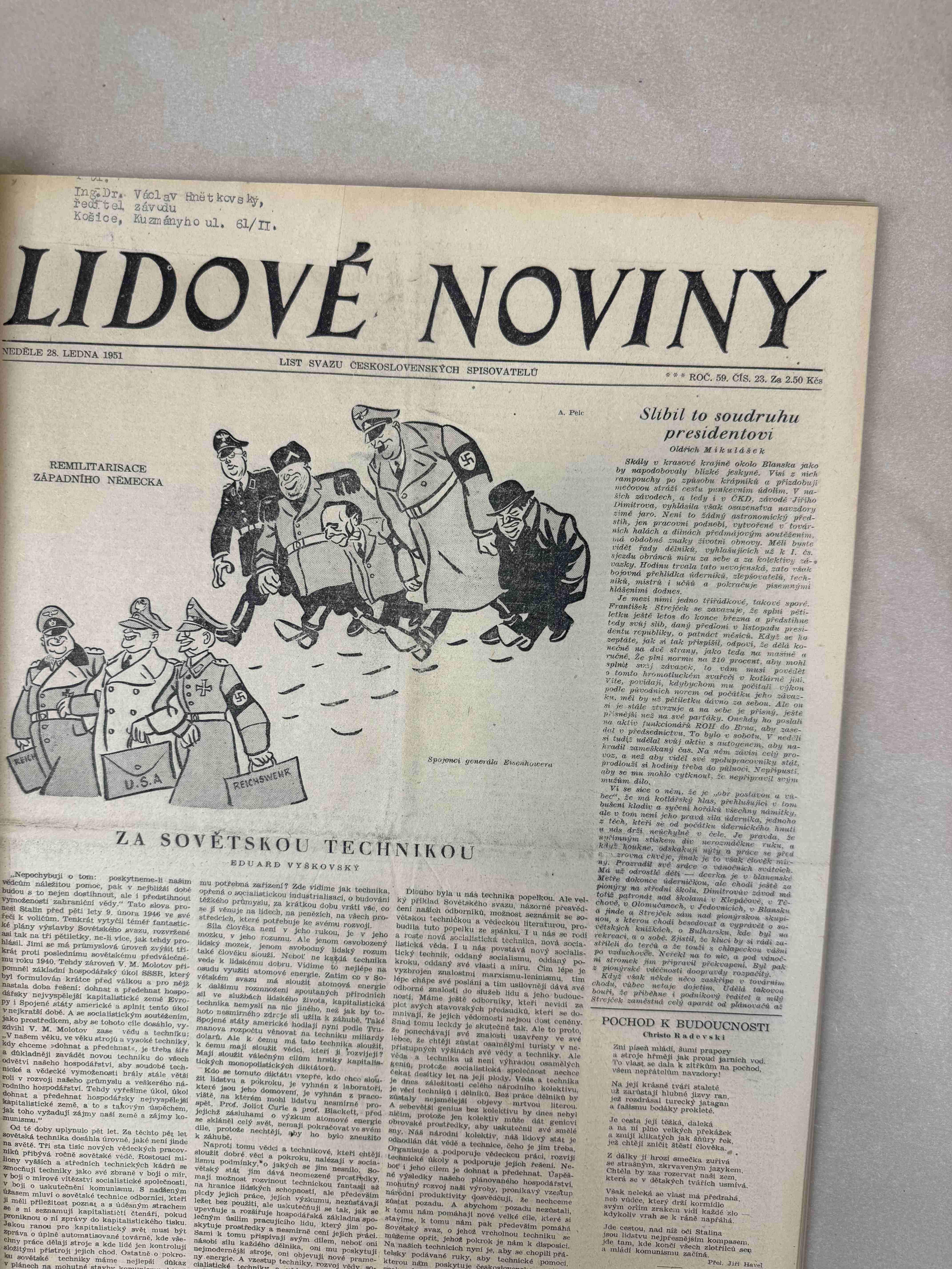 Nabízené noviny jsou určeny výhradně ke sběratelským účelům a neslouží k propagaci jakéhokoliv hnutí směřujícího k potlačení práv a svobod člověka (nacistického, komunistického apod.). Prodávající se distancuje od výše uvedených hnutí a jejich myšlenek.