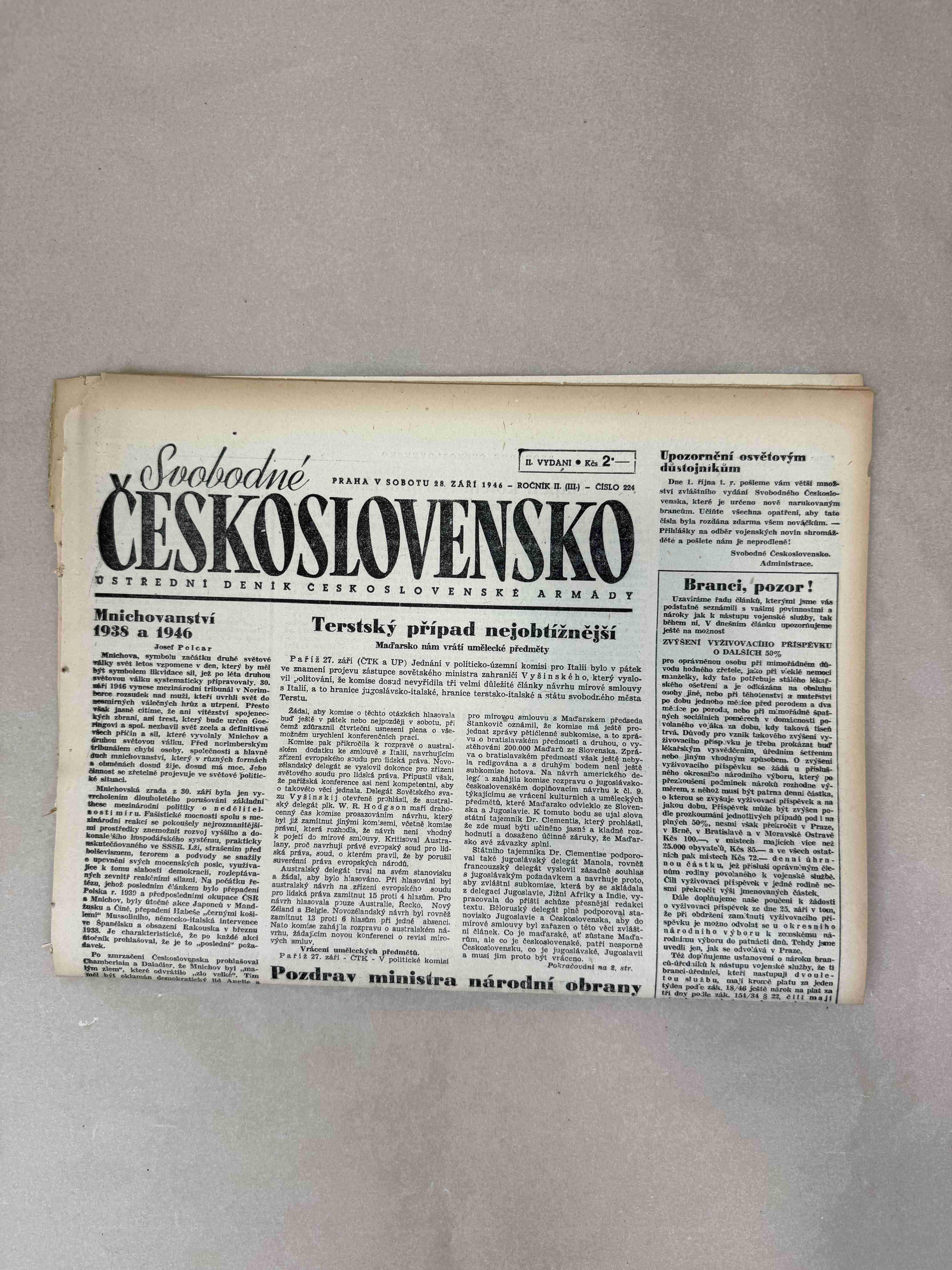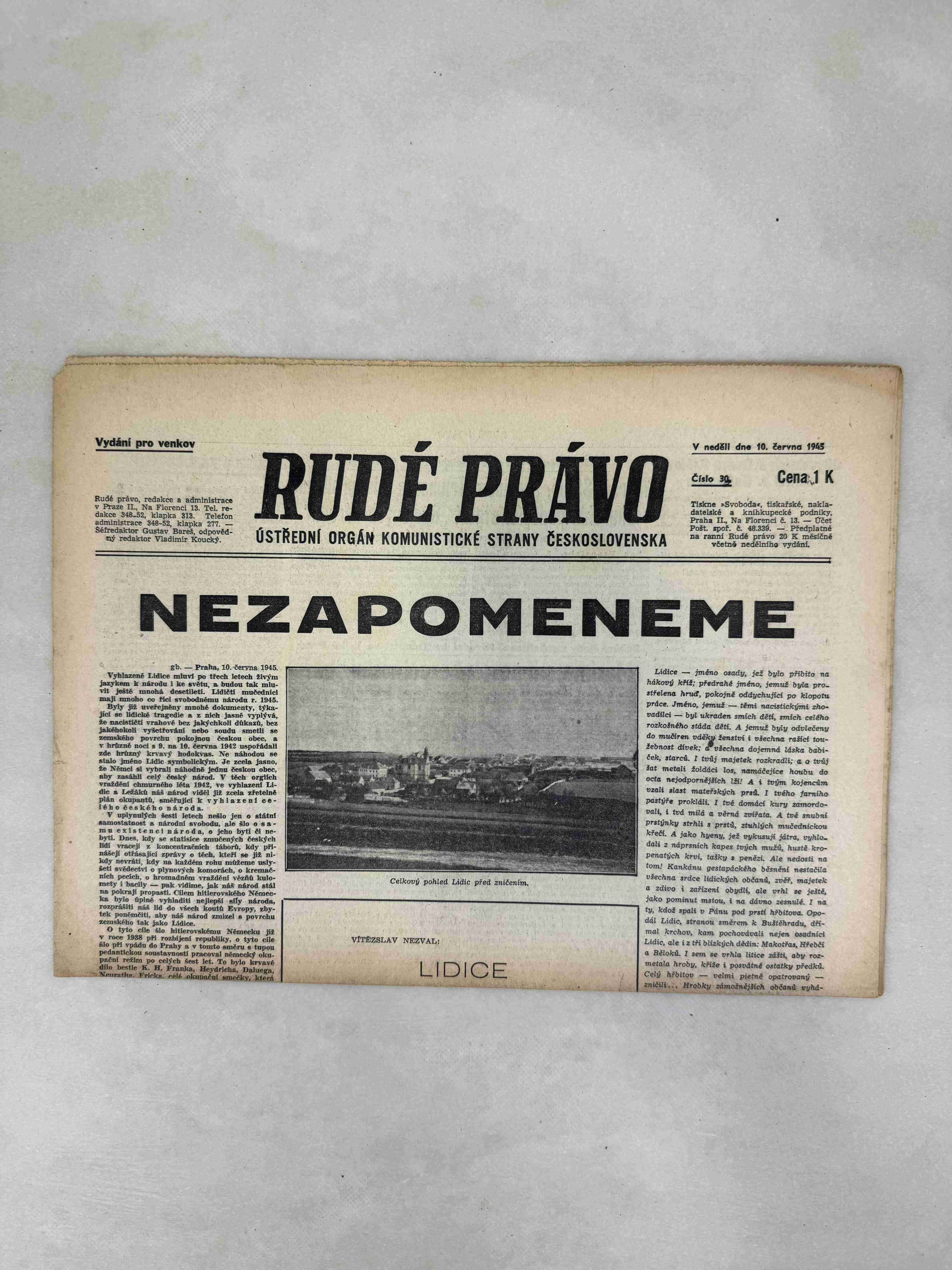 Nabízené noviny jsou určeny výhradně ke sběratelským účelům a neslouží k propagaci jakéhokoliv hnutí směřujícího k potlačení práv a svobod člověka (nacistického, komunistického apod.). Prodávající se distancuje od výše uvedených hnutí a jejich myšlenek.