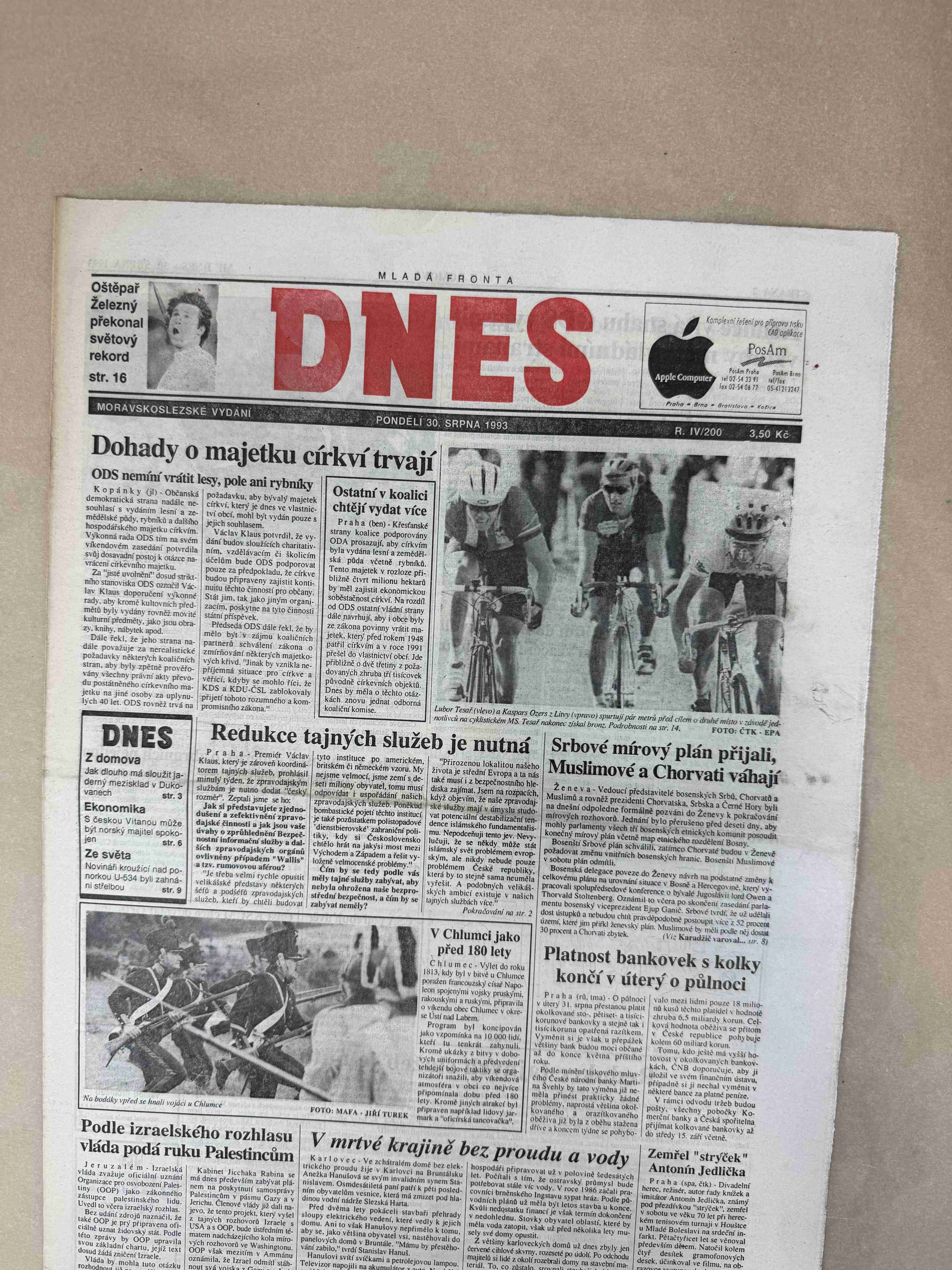 Originální dobový výtisk novin, nejedná se o reprodukci!