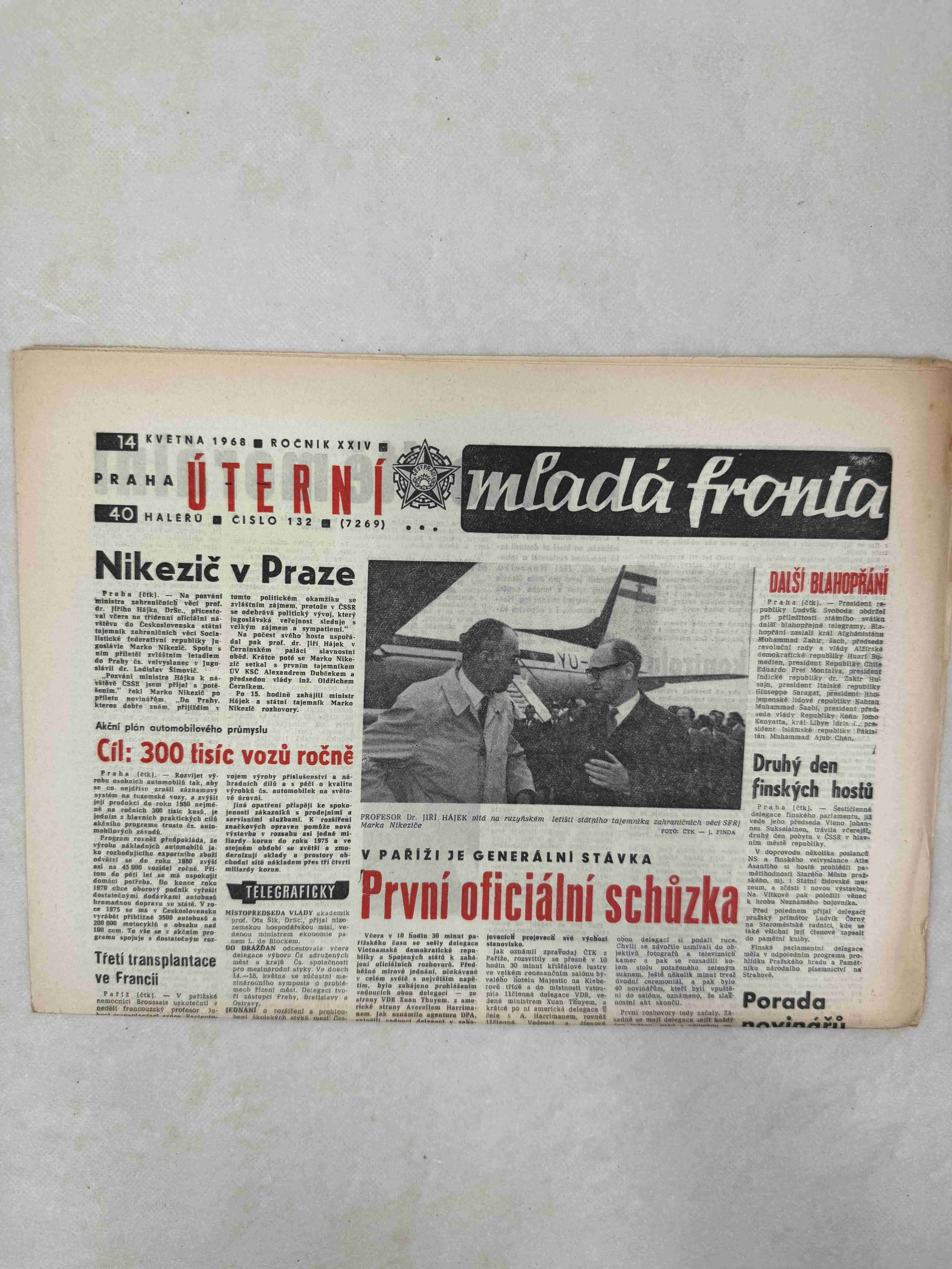 Originální dobový výtisk novin, nejedná se o reprodukci!