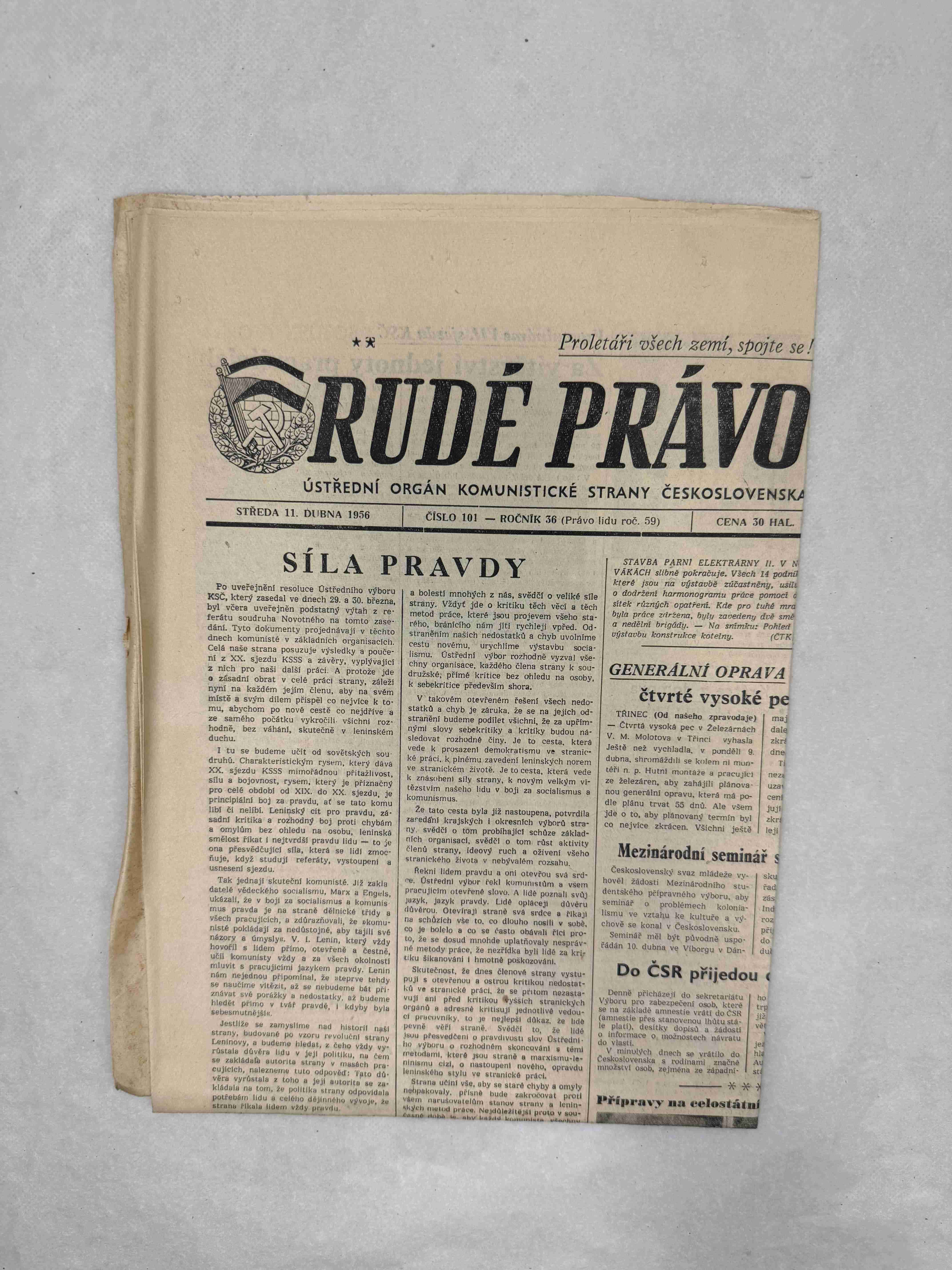 Originální dobový výtisk novin, nejedná se o reprodukci!